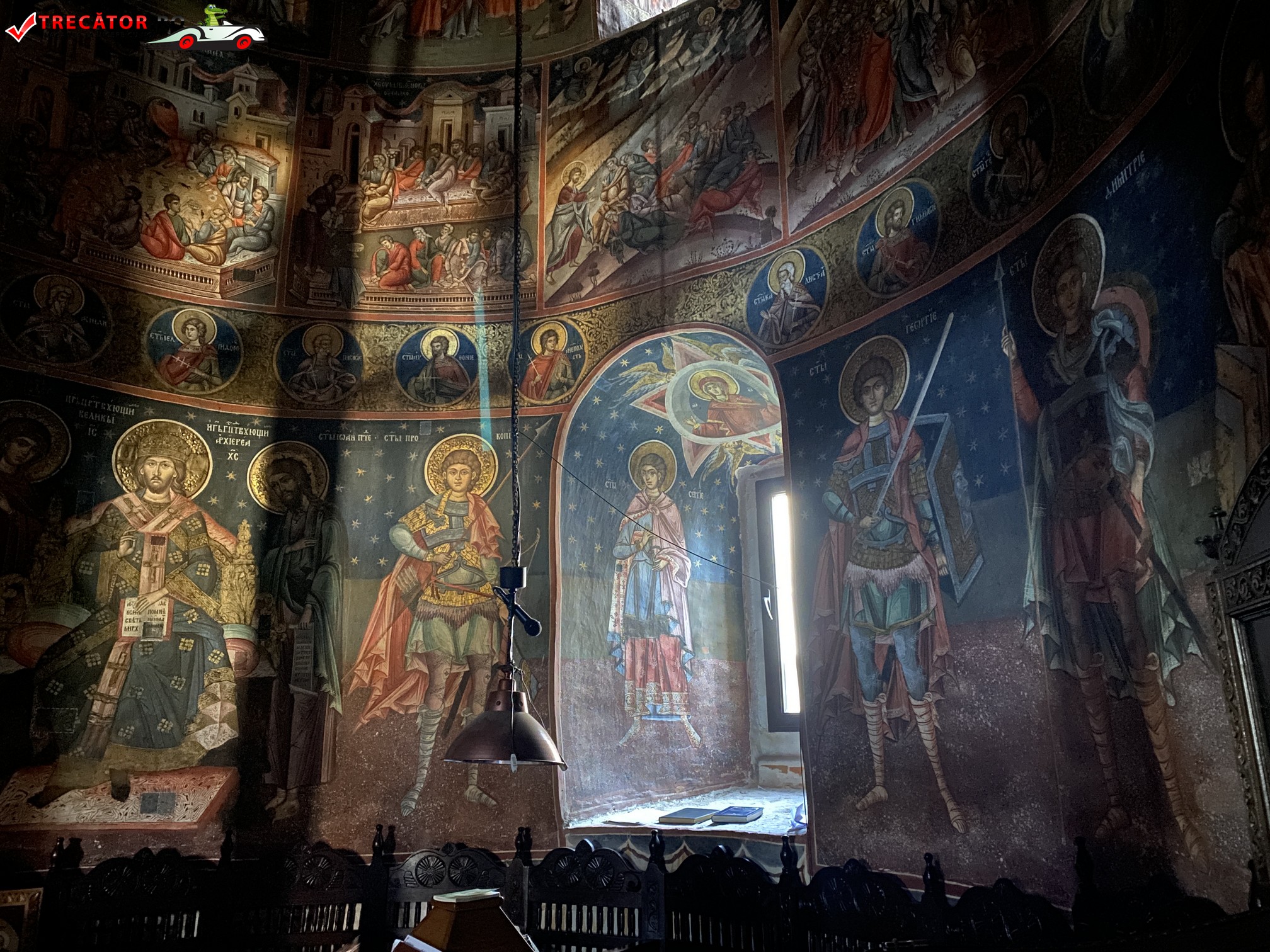 De asemenea, pe turlă există o inscripție a arhimandritului Motreanu care spune că boierii greci s-au ascuns în această mănăstire de frica lui Tudor Vladimirescu. Lăcașul de cult este înconjurat de ziduri și are porți de fier, semănând cu o cetate.