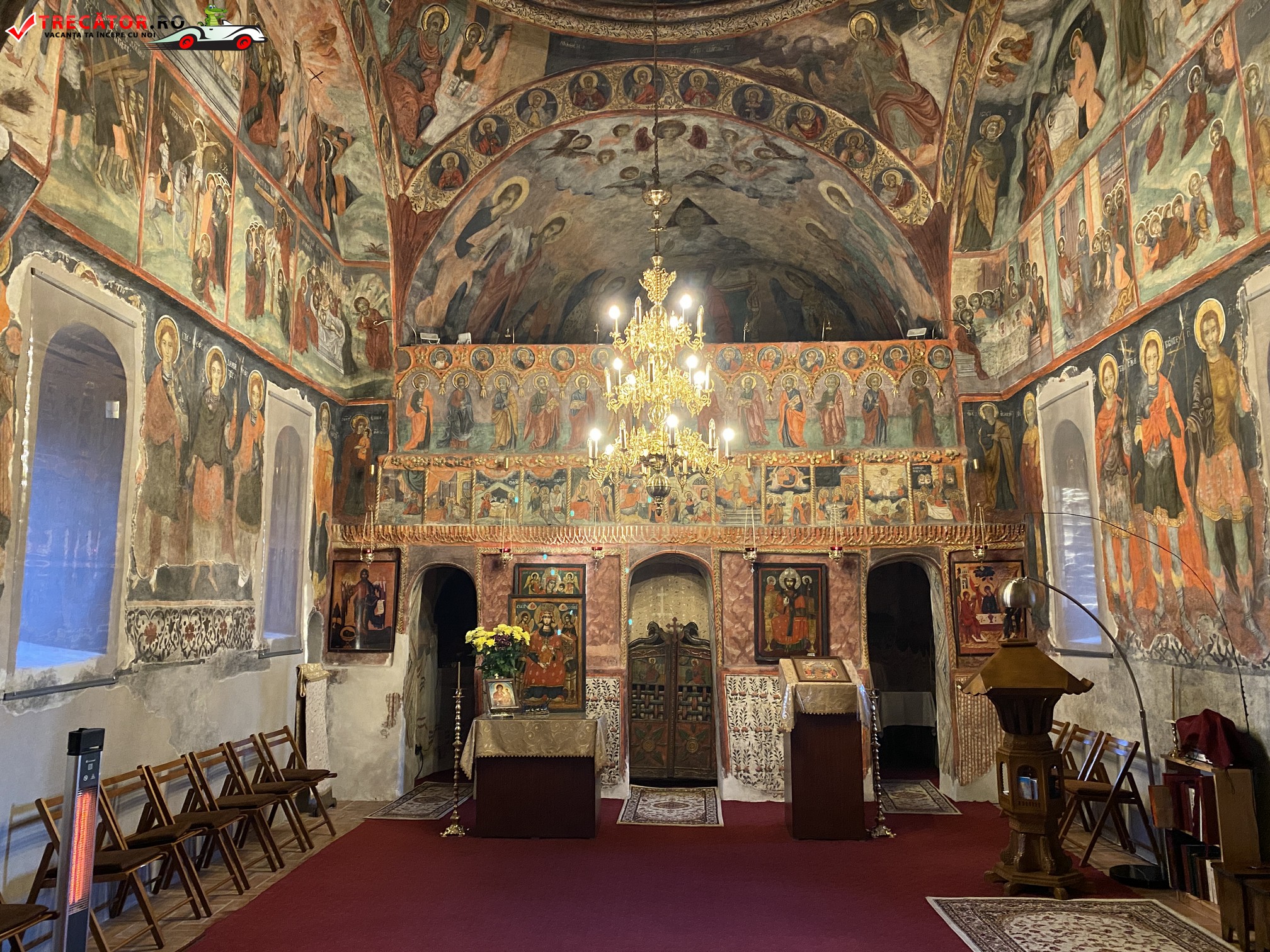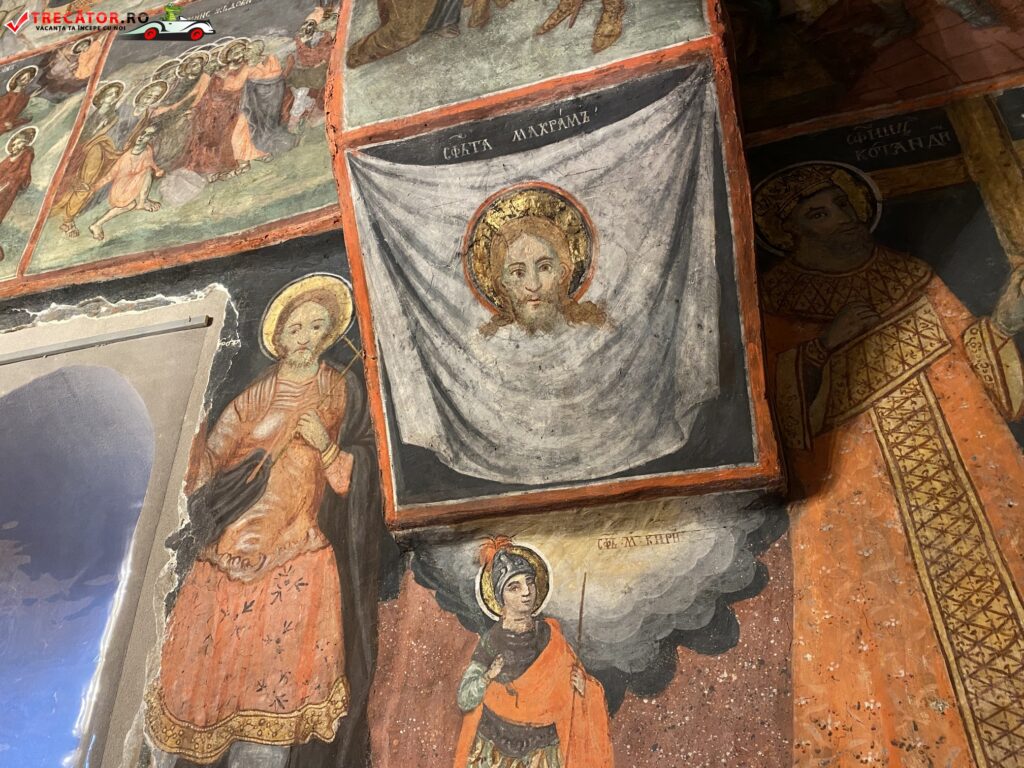 – pictura interioară din naos şi pronaos păstrează şi acum imaginea domnitorului şi a soţiei sale Ileana care ţin în mână macheta bisericii. Alături se află fiul lor Matei. O altă pictură importantă este cea cu boierii Craioveşti-Barbu, Pârvu şi Danciu.