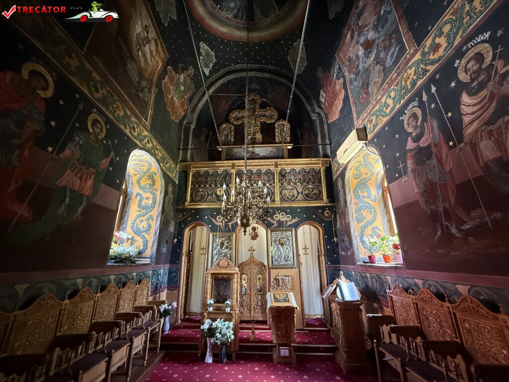 Fresca schitului este importantă prin stilul pictural neo-bizantin şi prin scrierea cu caractere chirilice ce se păstrează pe frontispiciile icoanelor murale. Multe din icoanele schitului sunt vii documente, cu însemnări ale timpului, icoane care, contrar intemperiilor vremii sunt încă frumoase şi se păstrează bine.