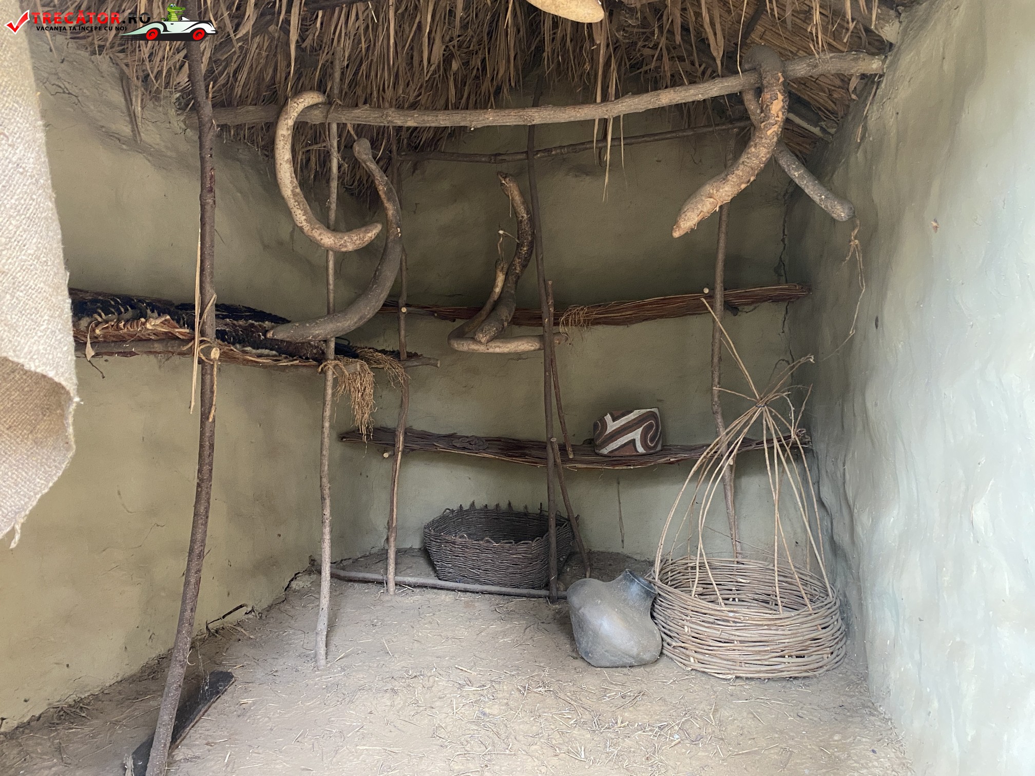 O coliba este reprezentativa pentru o locuinta de pescar, alta pentru agricultor, alta pentru olar etc, au în interior obiecte neolitice sau reconstituiri ale unor obiecte neolitice, mese, altare de cult, unelte pentru gospodarie si practicarea diferitelor ocupatii, deasemenea a fost reconstituita si o locuinta lacustra, folosita în vechime pentru depozitarea proviziilor pentru ca asezarile erau ridicate pe vai des inundate.