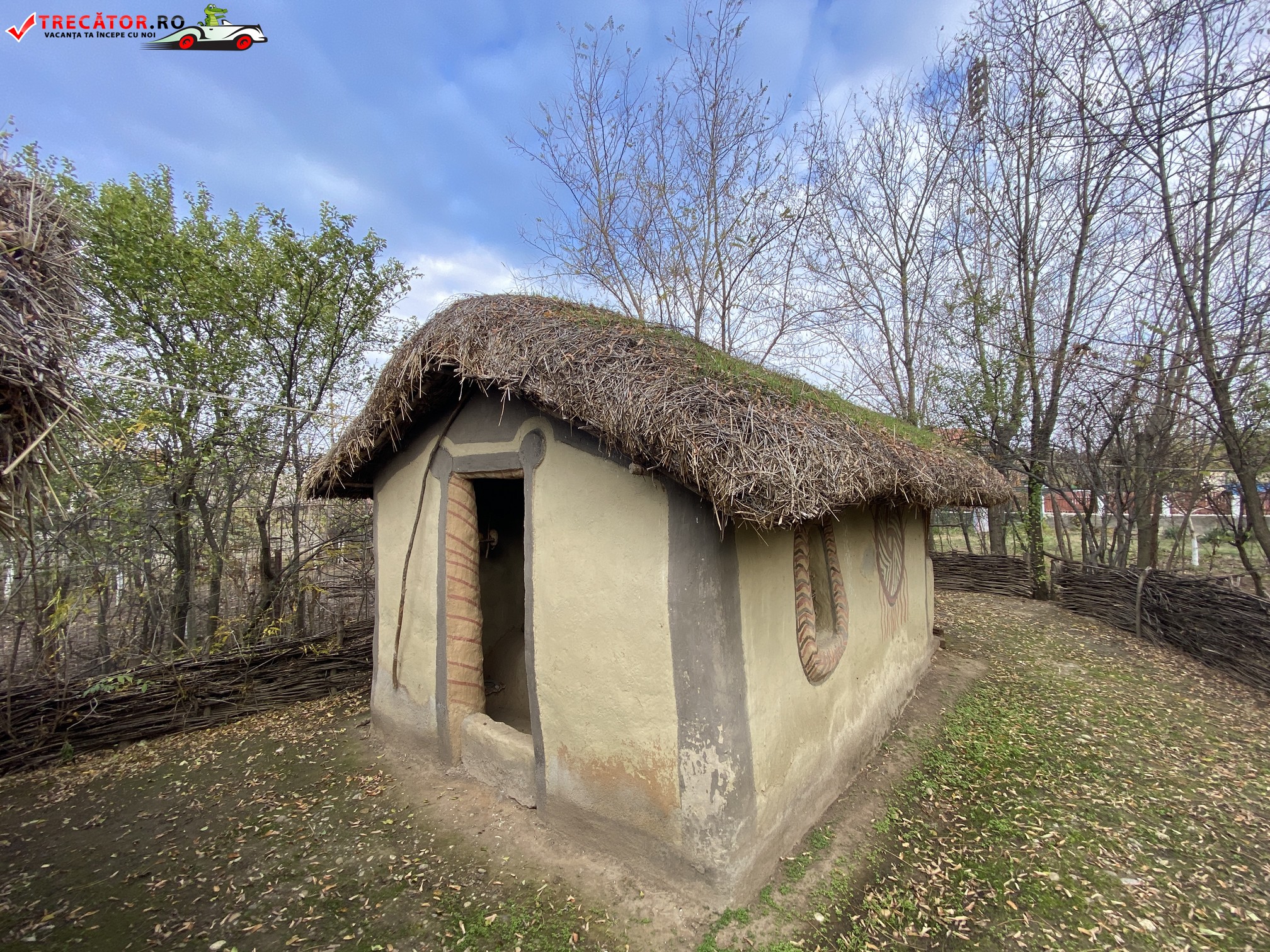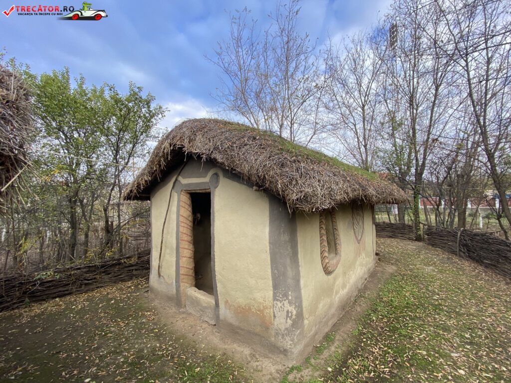 Satul neolitic este format din sase colibe ridicate în aer liber, pe un teren împrejmuit cu un sant de aparare si gard din nuiele împletite, intrarea se face pe o punte din lemn, iar colibele sunt de marime naturala.