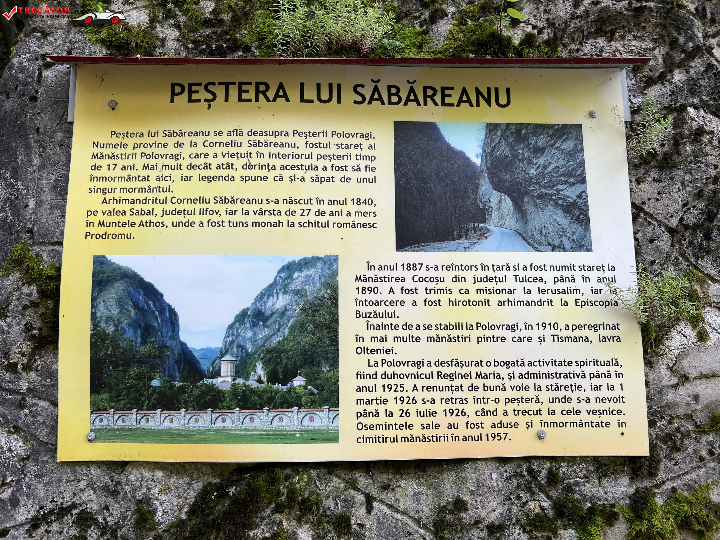 Corneliu Săbăreanu, în ultimii 17 ani de viaţă, a stat în peştera aflată chiar deasupra Peşterii Polovragi ca penitenţă. Aşa a considerat în urma unei vizite la Muntele Athos. A trăit în secolul al XIX-lea.