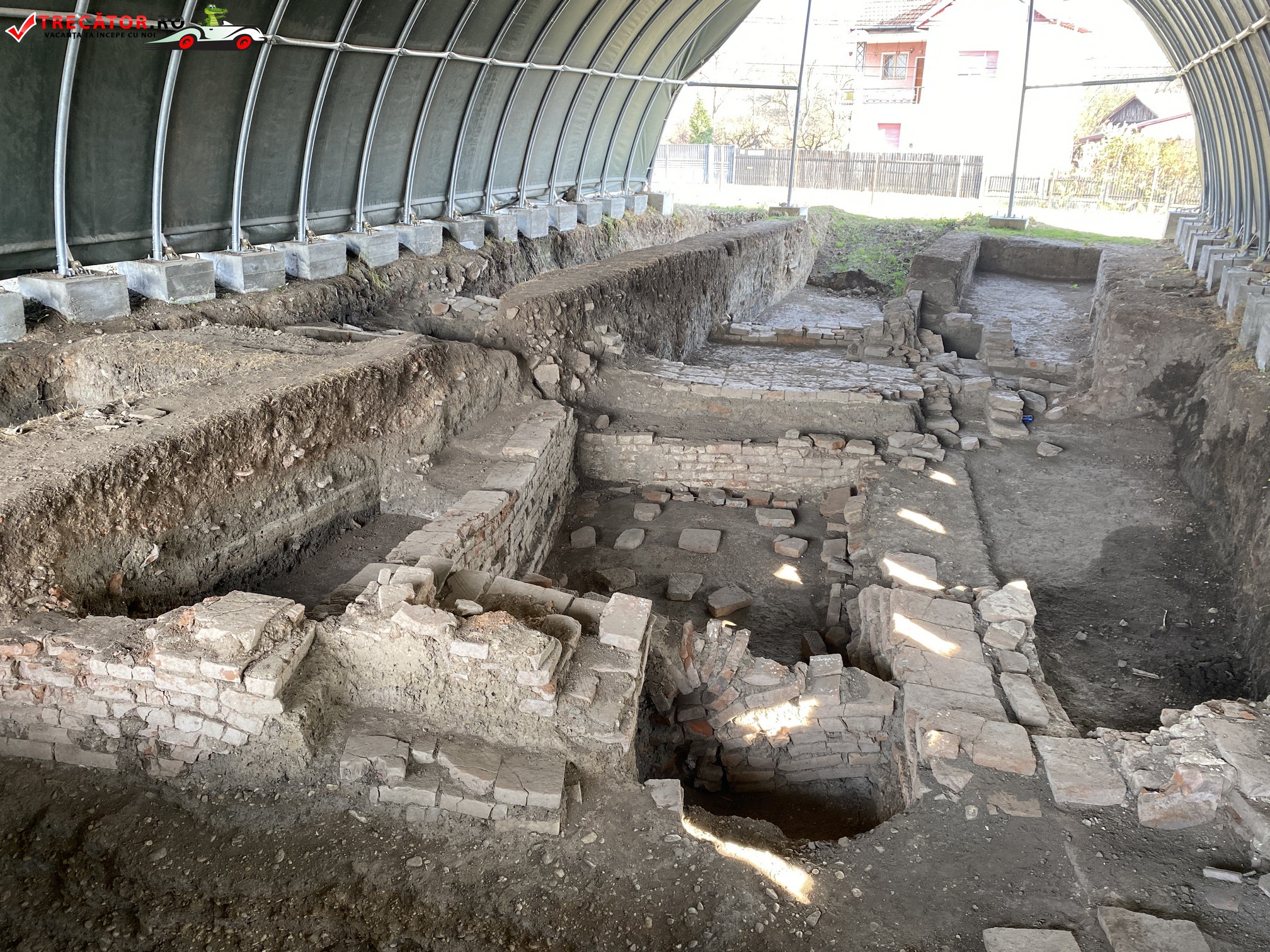 Sapaturile arheologice au pus în evidenta un zid de incinta, care adapostea zona centrala a orasului roman.