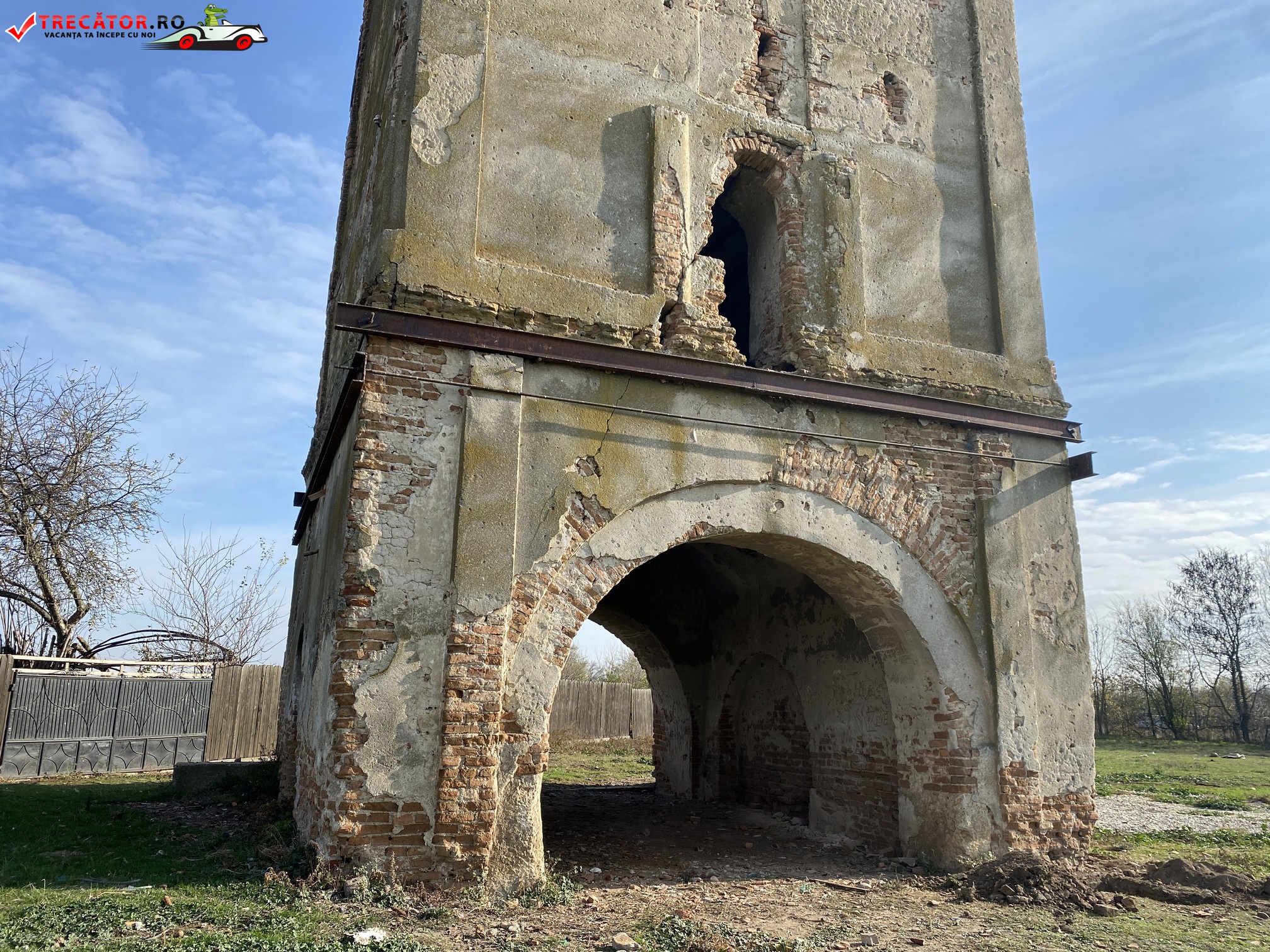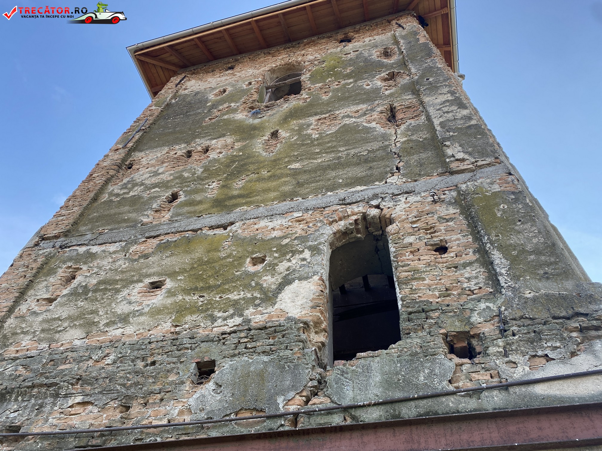 Turnul-clopotnita, o masiva prisma de plan patrat, este alcatuit din trei etaje cu platforme din scândura, prima platforma fiind asezata deasupra boltii parterului.