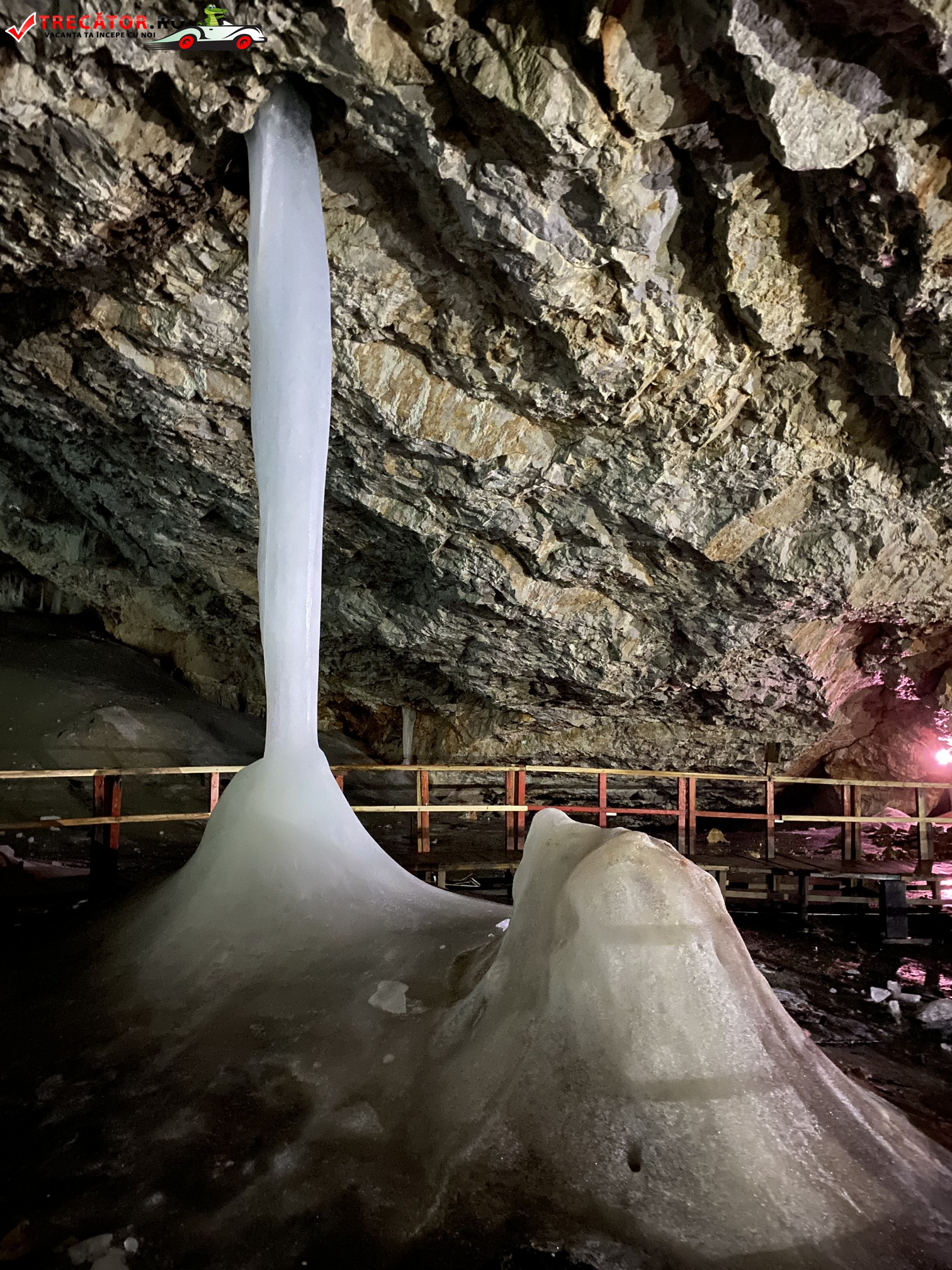 După cum spuneam la început, blocurile de gheaţă şi stalagmitele de gheaţă formează peştera. În prezent, blocurile de gheaţă se află într-o stare avansată de topire. În unele zone, aceasta s-a redus cu până la doi metri şi jumătate. În ultimul secol, această topire a devenit un proces din ce în ce mai rapid şi mai accentuat.