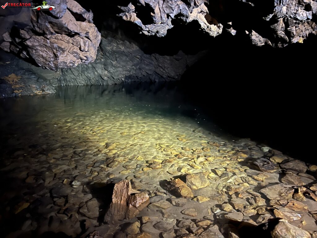 La cativa metri de la intrare se gaseste un lac de sifon explorat prin intermediul mai multor scafandri autonomi.