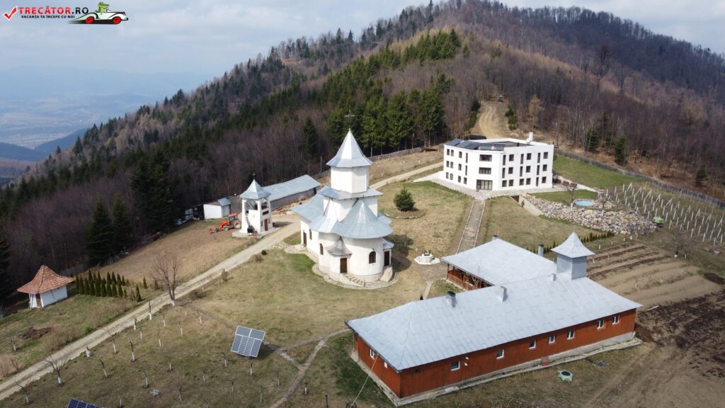 Pentru ridicarea acestui asezământ, a fost trimis cu ascultare Părintele Isaia Adragăi, care, împreună cu creștinii mobilizați de Toader Spoială din Dofteana, au pornit la lucru. S-a ridicat mai întâi o clădire din lemn cu pereți din scânduri , împărțită în două încăperi, una pentru parintele și una pentru muncitorii care au lucrat la ridicarea actualului corp de chilii (care cuprinde și paraclisul, bucataria si trapeza).