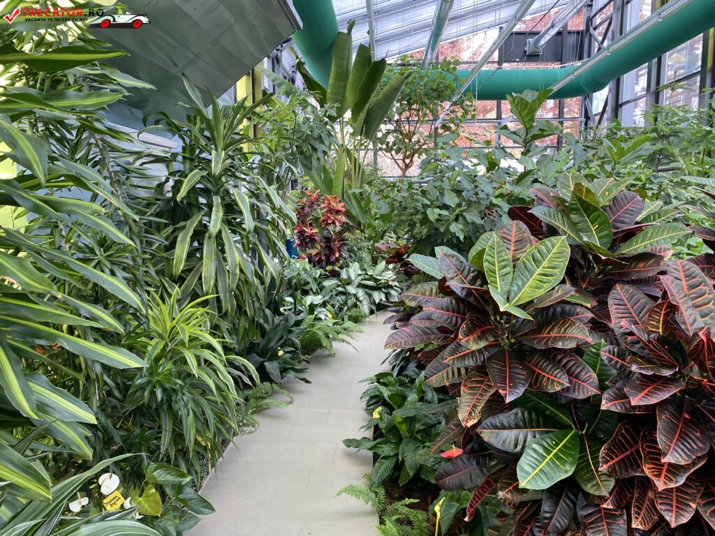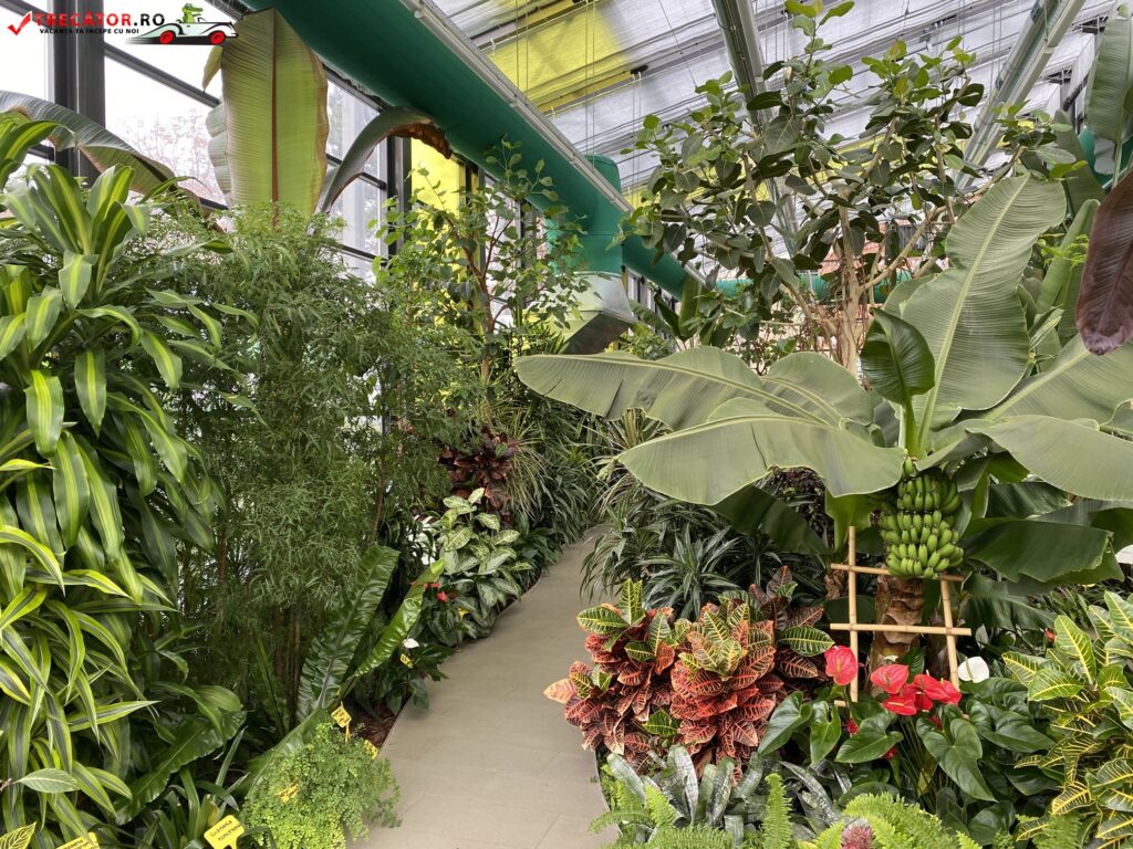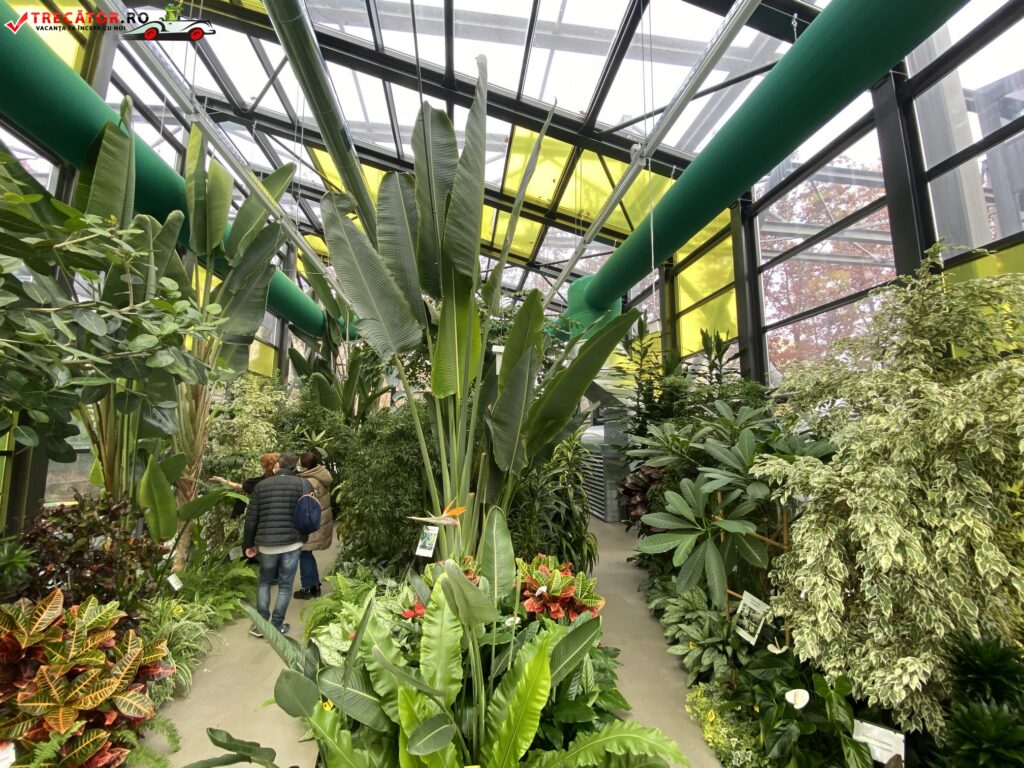 Cele șapte pavilioane ale serei au fost amenajate pe climate diferite, plantele exotice provenind din zone geografice diferite. Printre minunatele plante aduse aici se numără peste 300 de specii de cactuși, palmieri, orhidee, ferigi, precum și de ananas.