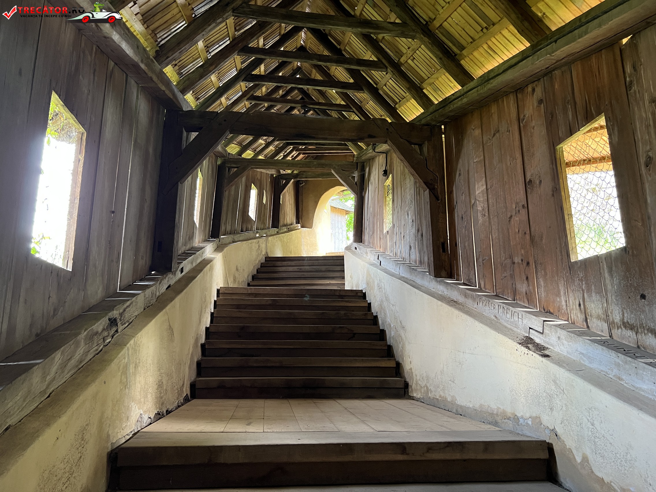 Intrarea în cetate se face direct din piața centrală printr-o scară de lemn acoperită lungă de 100 m ce datează din 1795. Aceasta face legătura exteriorului fortificației cu interiorul. Ușa datează din 1780 și este în stil renascentist.