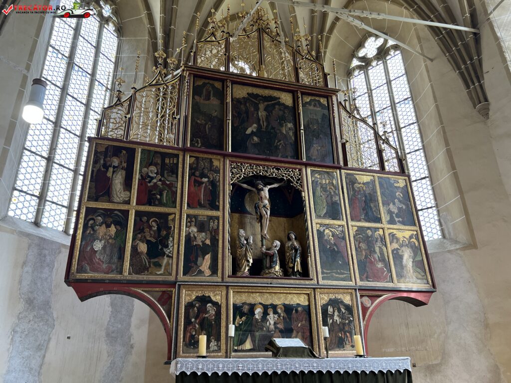 Altarul bisericii este cel mai mare din Transilvania și este alcătuit din 28 de panouri pictate de un pictor cu influențe nemțești și austriece. A fost construit de maeștri din Nurnberg și Viena între anii 1483-1513 și conține 28 de picturi superbe cu scene din viața lui Isus, a Mariei, răstignirea, botezul, tăierea împrejur și diferite picturi cu sfinți. Câteva dintre ele sunt copii realizate după picturile altarului Schittenstift din Viena.