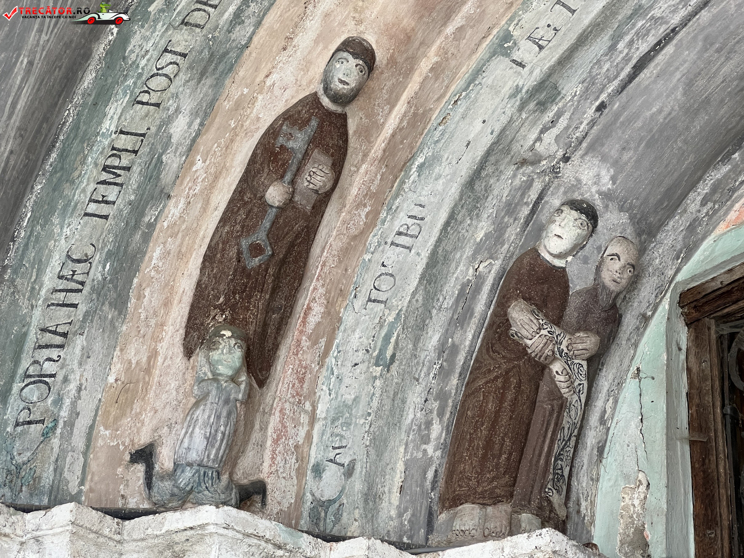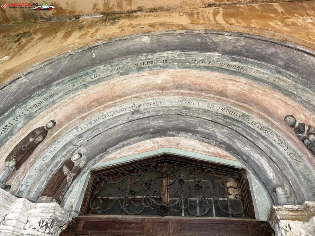 Capitelurile portalului au fost decorate cu lilieci, himere și capete de oameni. Principala tematică a acestor decorațiuni este reprezentarea primejdiilor sufletești și modul în care sufletul poate fi mântuit.