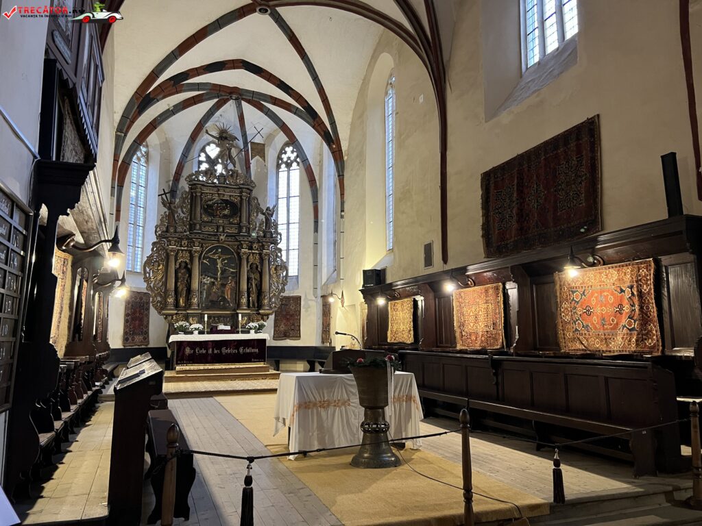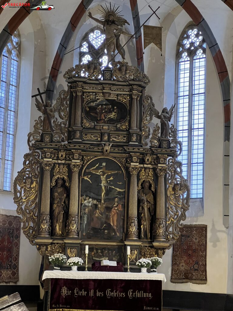 Odata ce pasesti inlauntrul sau nu ai cum sa nu remarci sunetele frumos armonioase ale orgai. Altarul bisericii dateaza din anul 1680, fiind construit in stil baroc si este sculptat de Johann West.