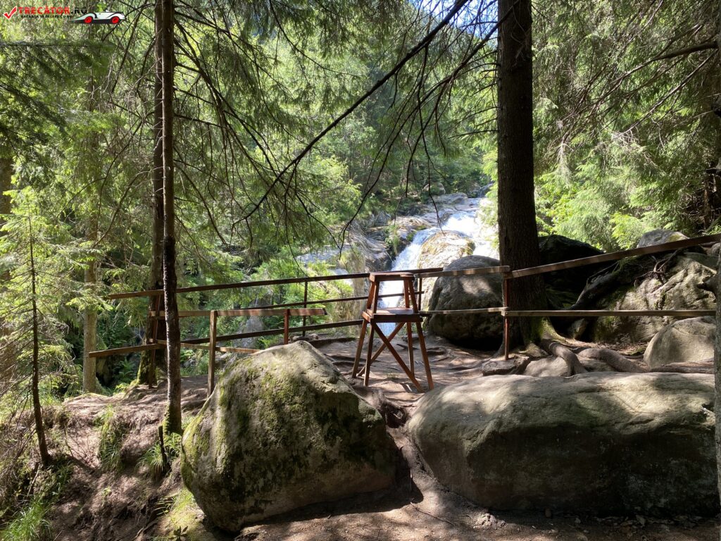 Intrucat accesul se face pe o panta accidentata, poteca este suspendata si realizata cu trepte si balustrade din lemn. Punctul de belvedere este imprejmuit cu balustrade din lemn si a fost amplasat in cel mai adecvat loc pentru observarea cascadei. Tot aici a fost amenajat si un stativ pentru aparatele foto ale turistilor care doresc sa se fotografieze in grup complet.