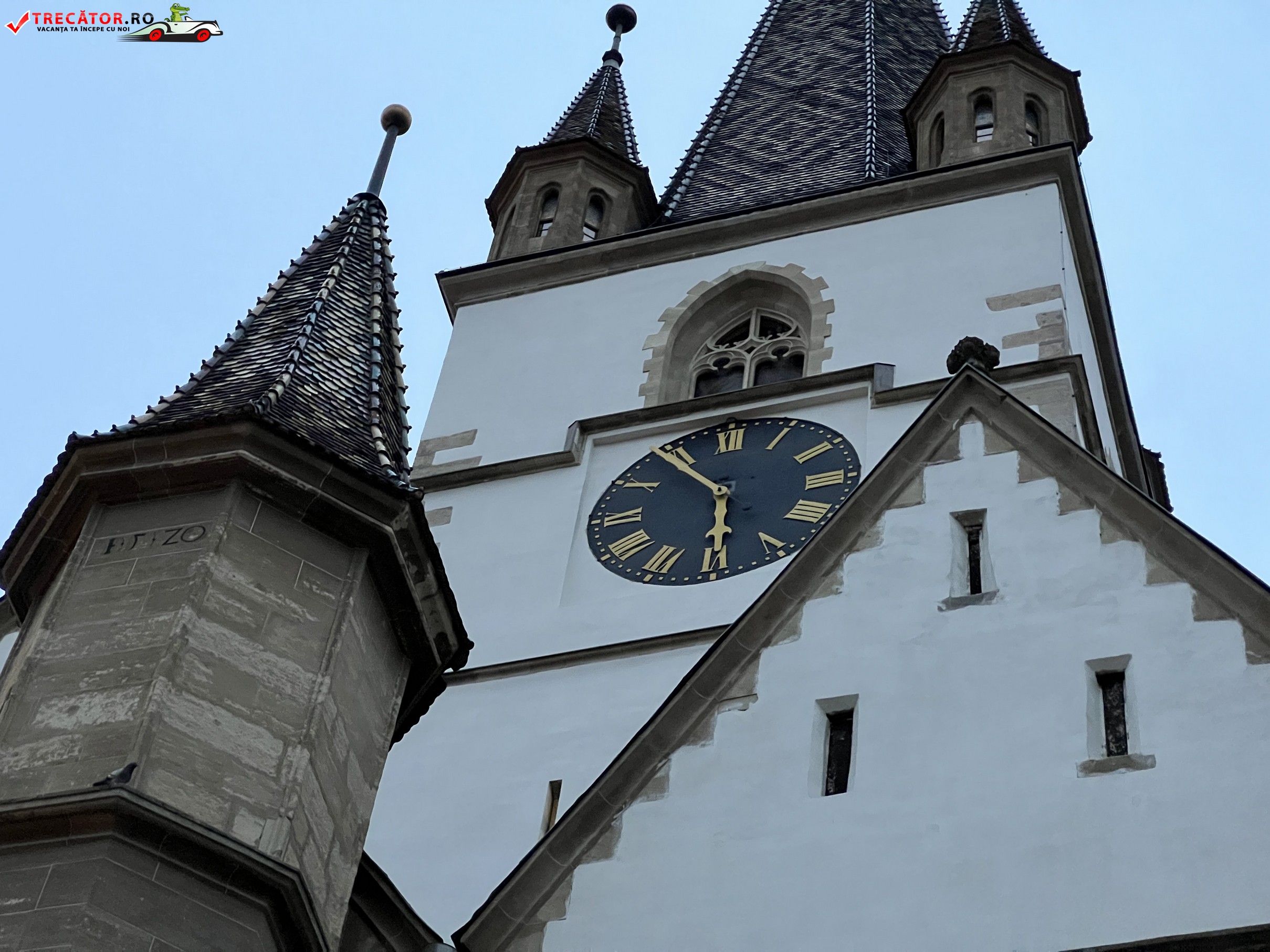 Catedrala Evanghelică din Sibiu are un turn mare, principal, care este situat pe cele şapte nivele, iar în colţuri are, practic, încă patru turnuri mai mici, acest lucru fiind interpretat ca fiind un oraş ce avea „dreptul la condamnare”. Turnul principal măsoară exact 73.34 de metri în înălţime şi este clasat ca fiind cea mai mare construcţie din România de tip medieval, întreaga clădire fiind considerată şi cea mai înaltă dintre catedralele din ţară.