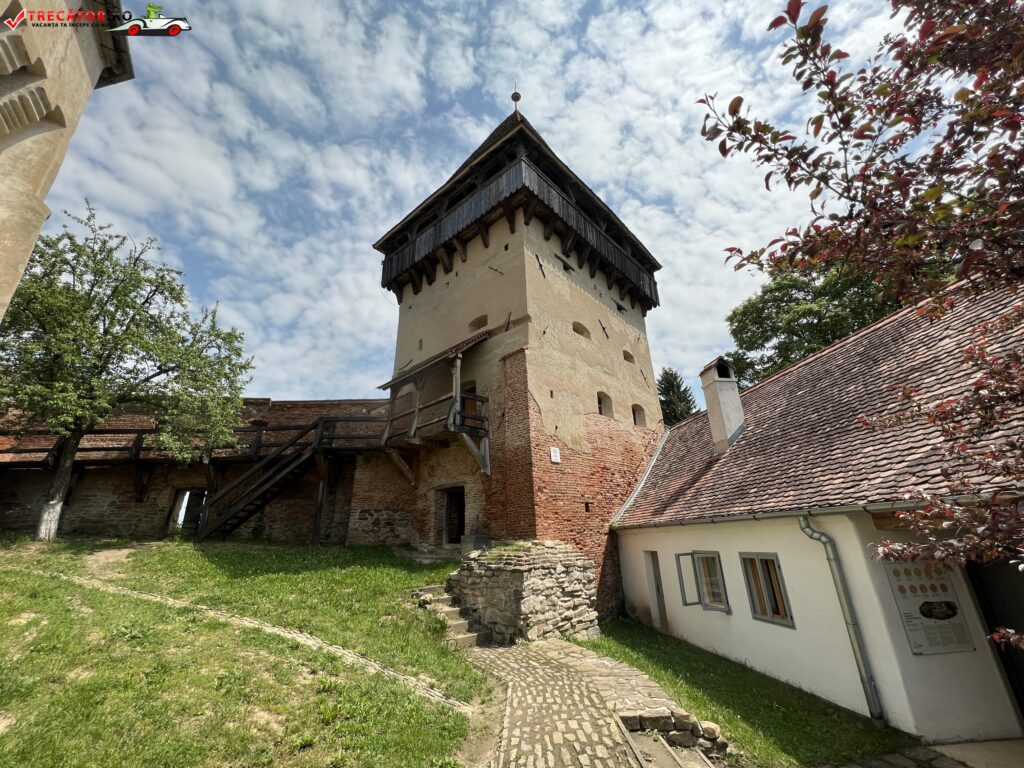 Biserica este înconjurată de patru turnuri de apărare. Turnul de poartă, construit pe partea de est a bisericii, este unul impresionant, cu patru niveluri, şi dotat cu guri de tragere orizontale, cu urme clare de la grătarul hersei. El asigura accesul. Celelalte turnuri, mult mai mici, au fiecare personalitatea lor.