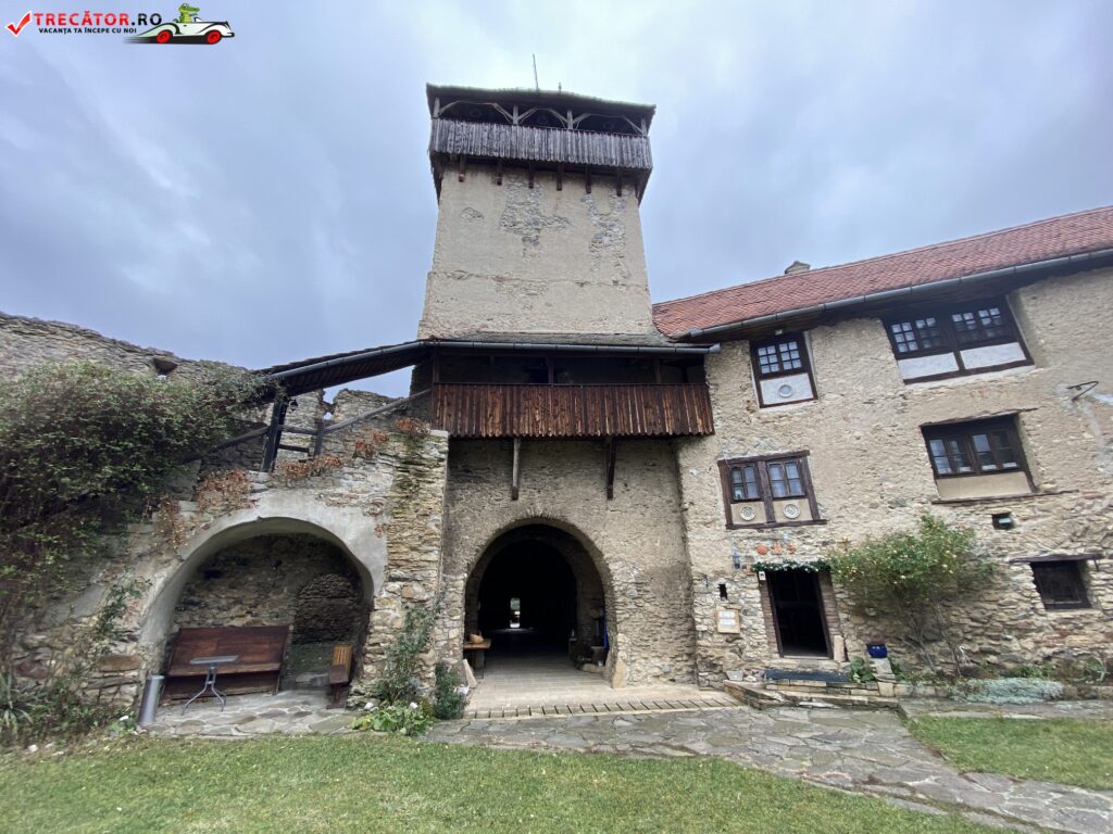 Iniţial, era formată dintr-un turn-locuinţă, o capelă şi un zid circular. Cetatea a fost abandonată de familia greavilor şi a ajuns în stăpânirea comunităţii în secolul al XV-lea. Atunci s-a adăugat un masiv turn de poartă, cu două niveluri, unde saşii îşi ţineau slănina, de unde numele de „Turnul Slăninii”. Turnul-clopotniţă a fost renovat în 1879, când a fost şi înălţat şi a dobândit înfăţişarea de astăzi.