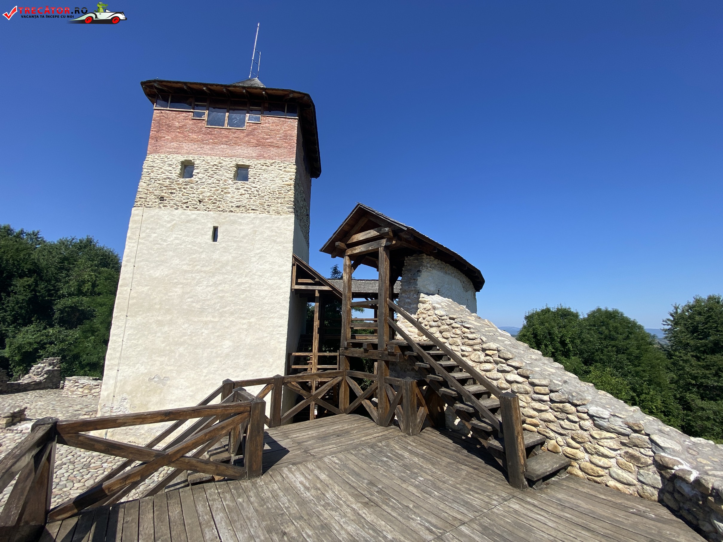 Turnul principal domină o curtină aproape circulară; chiar dacă de o mărime modestă, el a conservat toate atributele unui astfel de element militar şi rezidenţial. Curtina simplă, cu creneluri libere, a apărut în secolul următor întemeierii, iar în a doua parte a sa a fost clădit acolo un mic palat, în interiorul căruia trona o superbă sobă cu cavaleri în turnir.