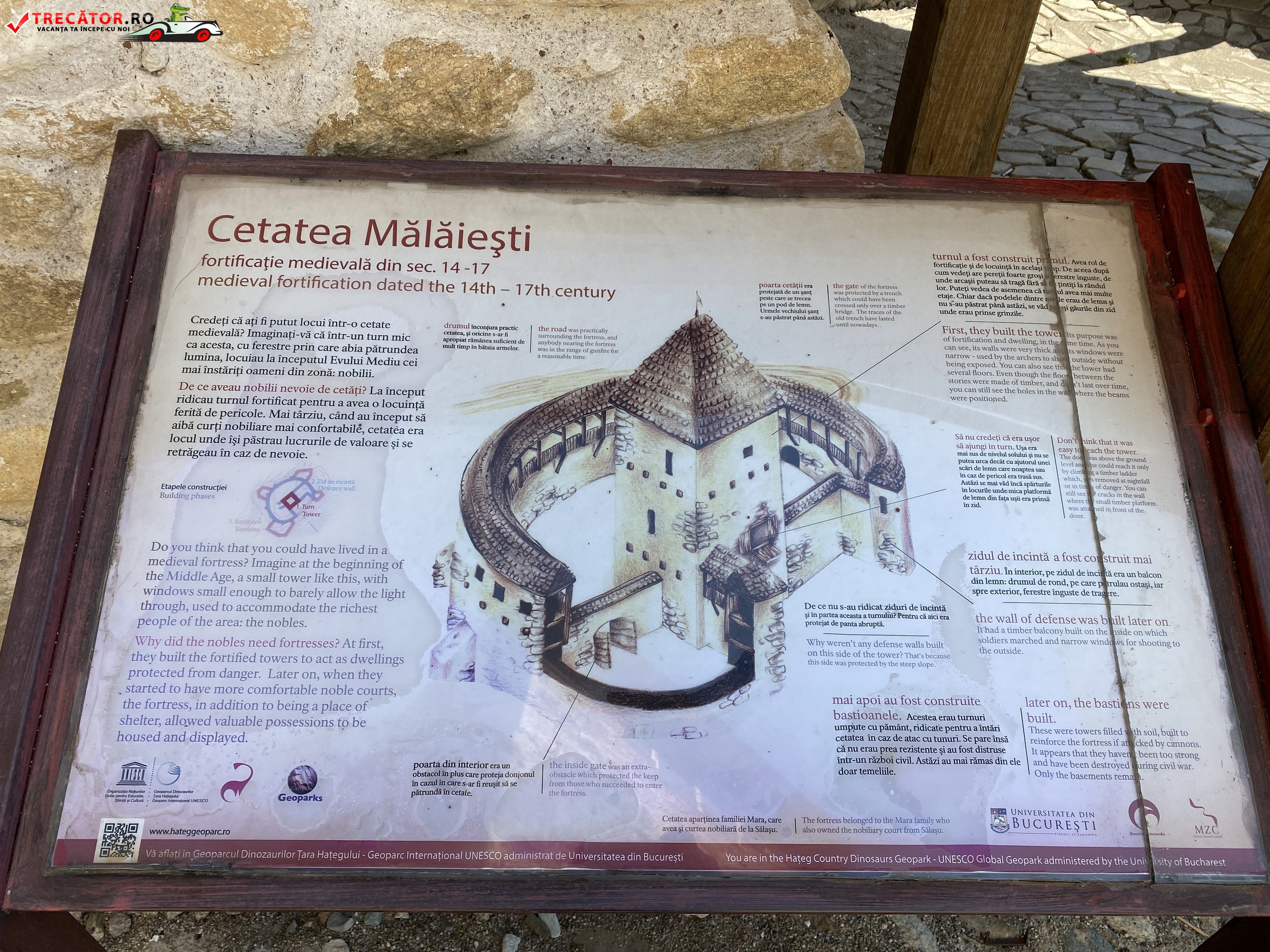 Cetatea Mălăieşti este o bijuterie a Ţării Haţegului. Cu turnul ei central şi fragmentul de curtină păstrat, fortificaţia este un foarte bun exemplu al modului în care se construiau cetăţile de către românii medievali din Transilvania.