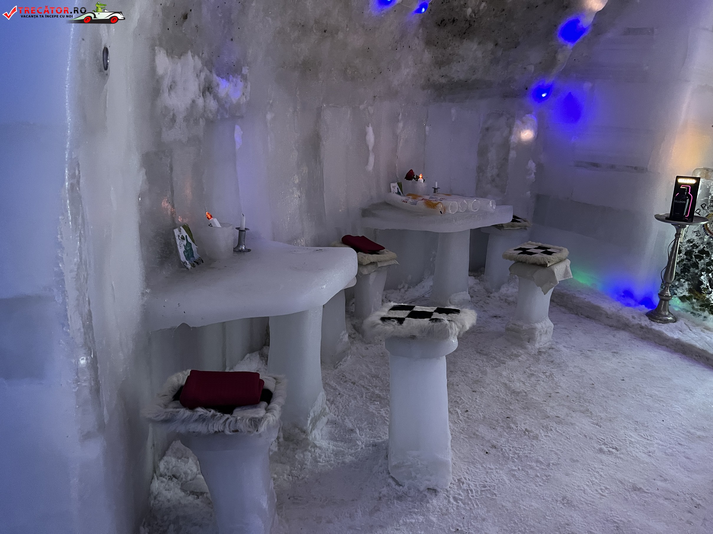 Blocurile de gheata scoase din interiorul lacului Balea sunt taiate cu multa grija si asezate unul peste celalalt in asa fel incat sa poata fi creata o arhitectura cu totul noua. Foarte aproape de hotel au fost construite mai multe igluuri care le ofera turistilor posibilitatea de a trai putin din experienta popoarelor nordice.