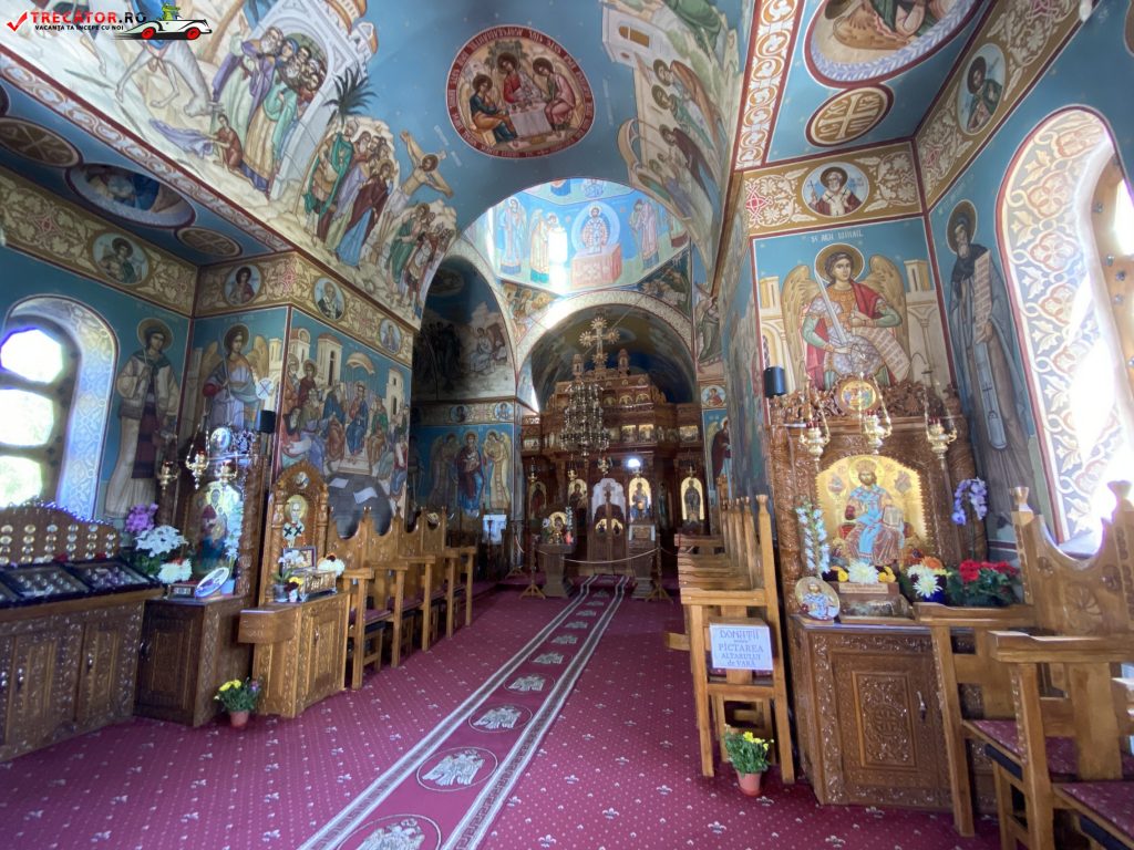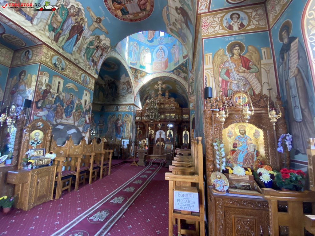Catapeteasma bisericii este sculptată în lemn de păr sălbatic.