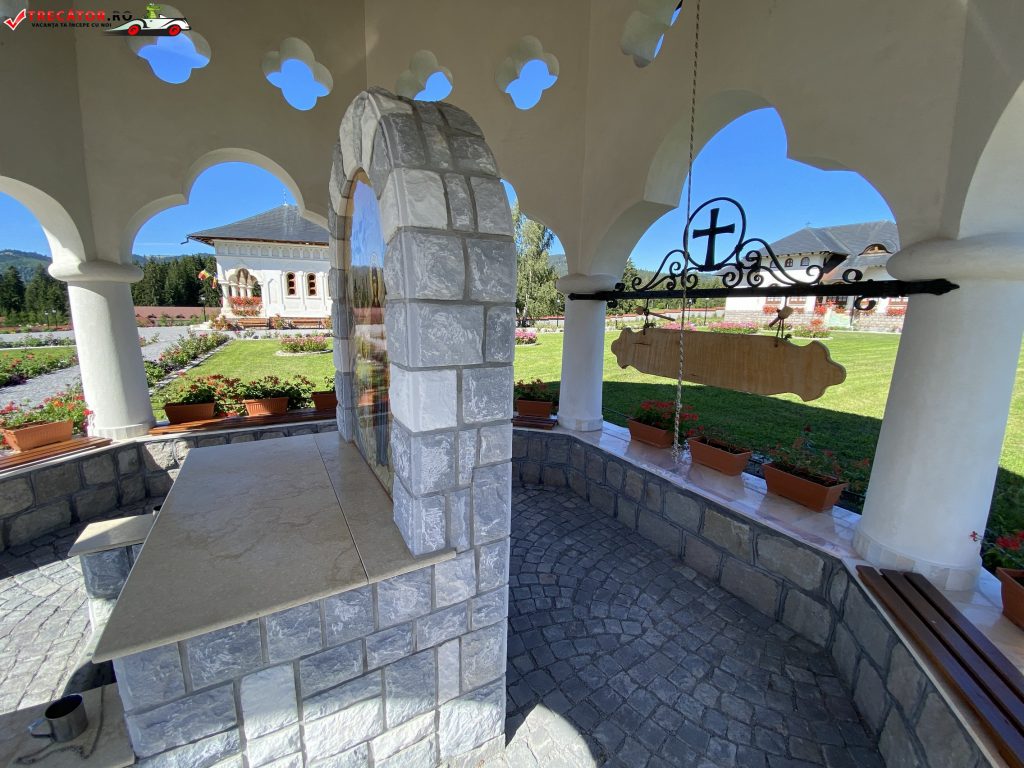 Clopotniţa, care este şi poarta de intrare în Sfânta Mănăstire, simbolizând Poarta Raiului, este pictată cu scene care ne amintesc de dragostea de aproapele, mila de cei săraci şi primirea de străini.