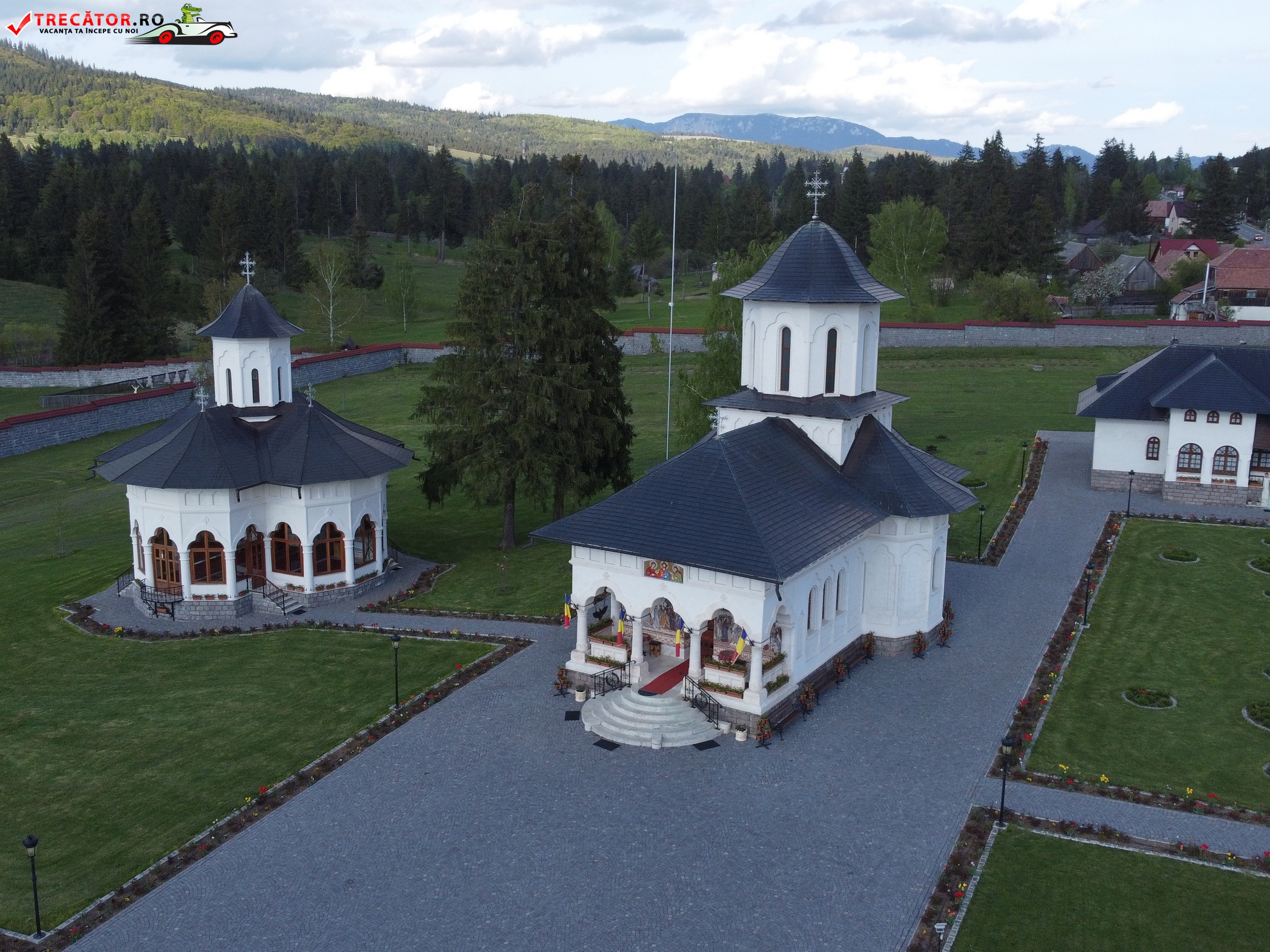 Sfânta Mănăstire cu hramul „Adormirea Maicii Domnului” din Izvoru Mureşului este aşezată la poalele Hăşmaşului Mare, între cei doi fraţi de cruce Mureşul şi Oltul, la o altitudine de 950 m, pe DN 12 între Miercurea Ciuc şi Gheorghieni.