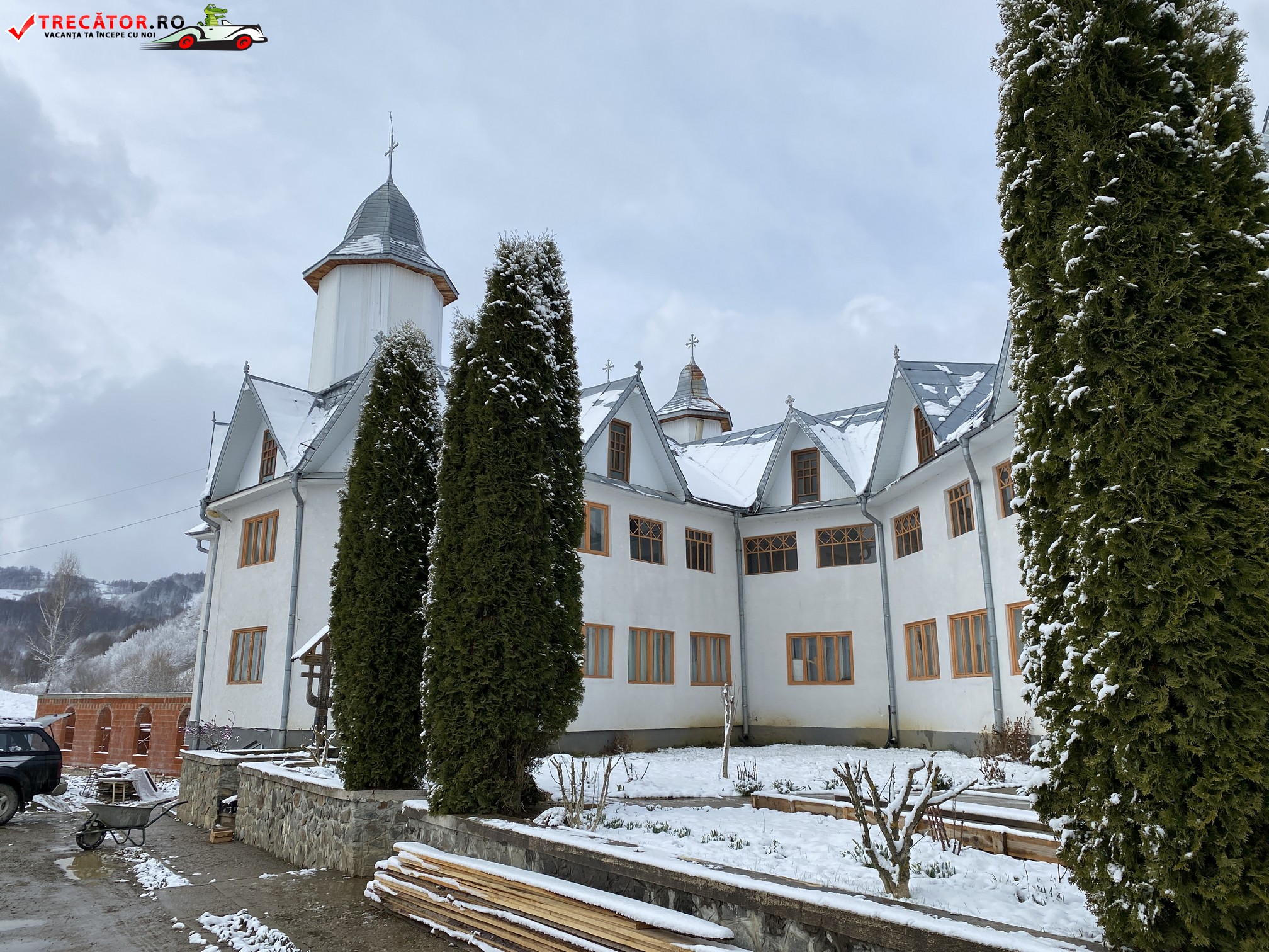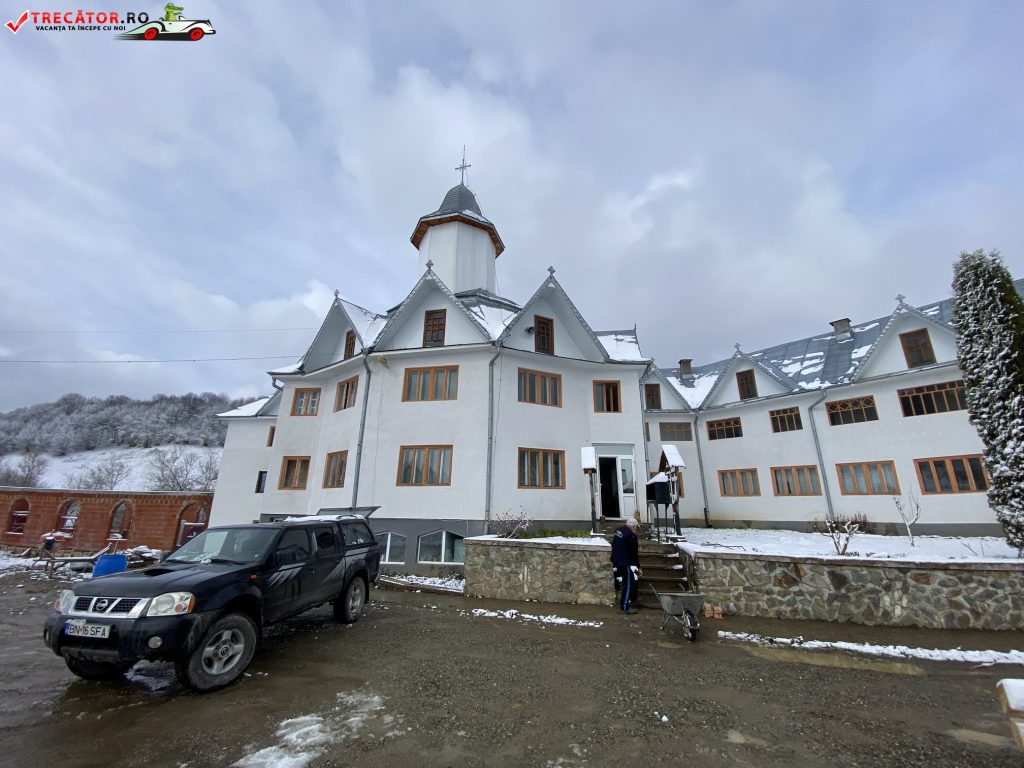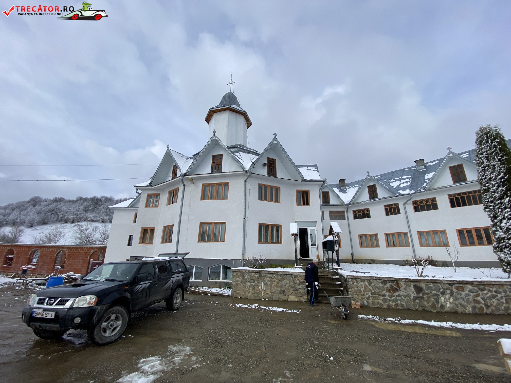 Terenul pe care s-a construit asezamantul in suprafata de 10 ha (teren arabil si padure) a fost donat de fratii Tocariu: Grigore, Aurel si Victor. Pana in 1998 s-a construit o cladire monolit din doua corpuri: cel din sud de forma circulara, cel din nord de forma dreptunghiulara. Constructia este din zid si lemn. In capatul din sud, la etaj, se afla paraclisul (bisericuta de iarna) din caramida BCA. Sub paraclis, la parter, este trapeza si bucataria, iar la capatul vestic al acestui corp sunt beciurile.