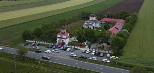 Clopotnita construita la 50 m sud-est este din zid si are o cupola rombica acoperita cu tabla.