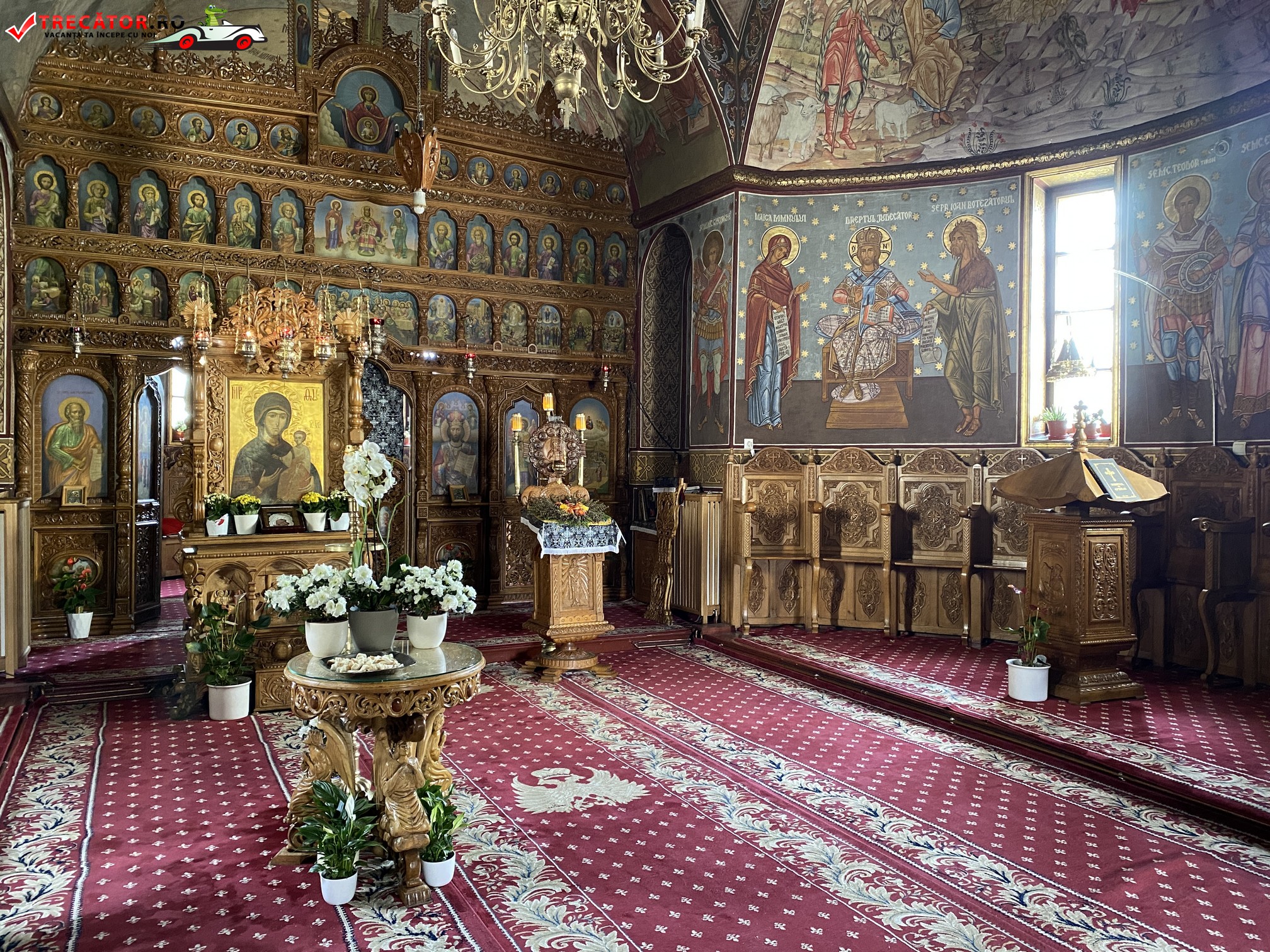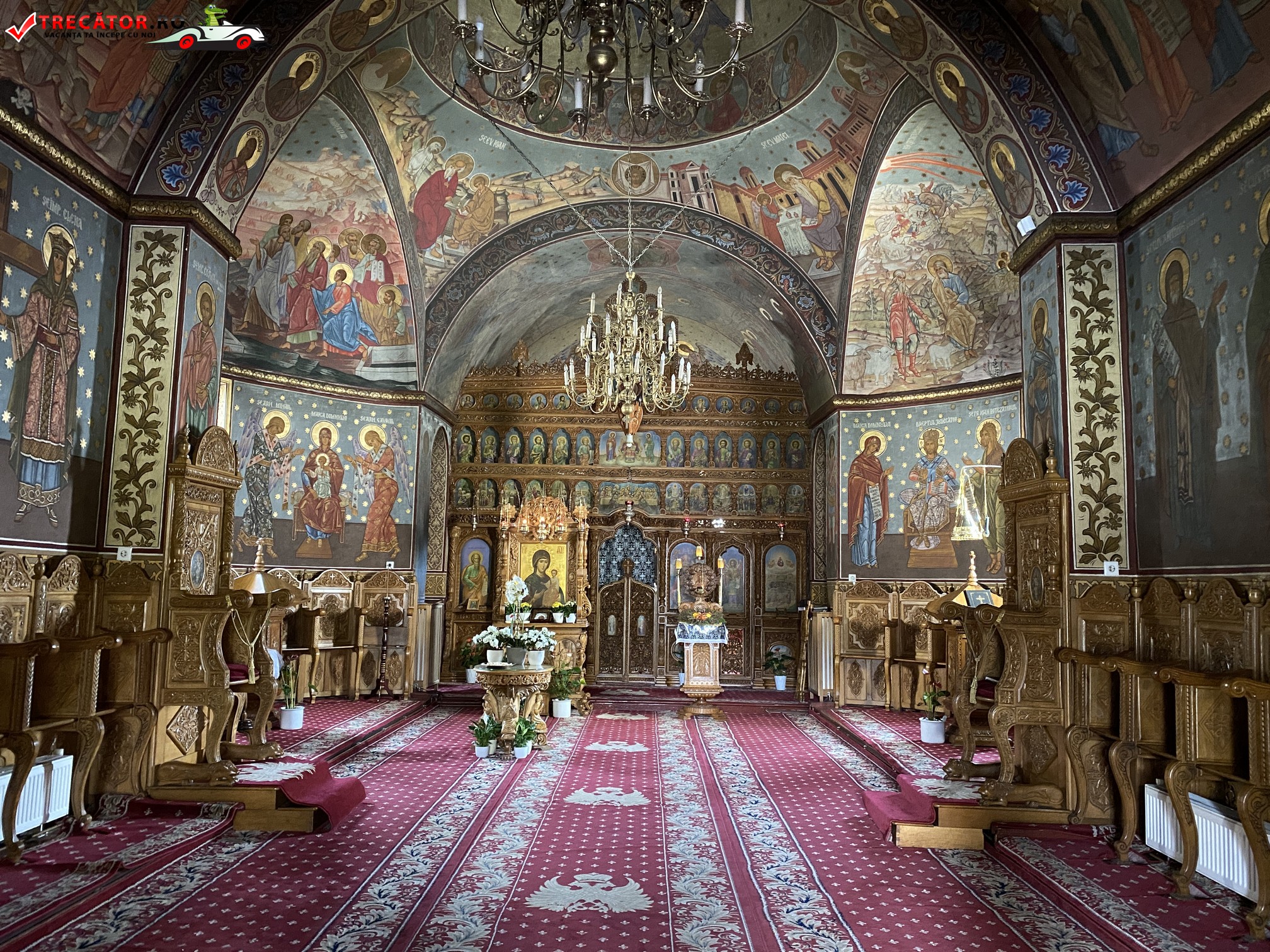 În biserică se află icoana Maicii domnului cu Pruncul Iisus, pictată de Dumitru Belizari, care a fost depusă de Patriarhul Miron Cristea pentru o noapte la Sfântul Mormânt al Mântuitorului, sfințind-o apoi la râul Iordan împreună cu alte nouă icoane ferecate din argint. La vest de biseriică se află o clădire mică, parter cu verandă acoperită cu tablă, folosită pentru salon deprimire, iar în continuarea acesteia se află clădirile gospodăriei anexe. La răsărit de bisesică sunt două clădiri acoperote cu tablă, între care sa află paraclisul bisericii.