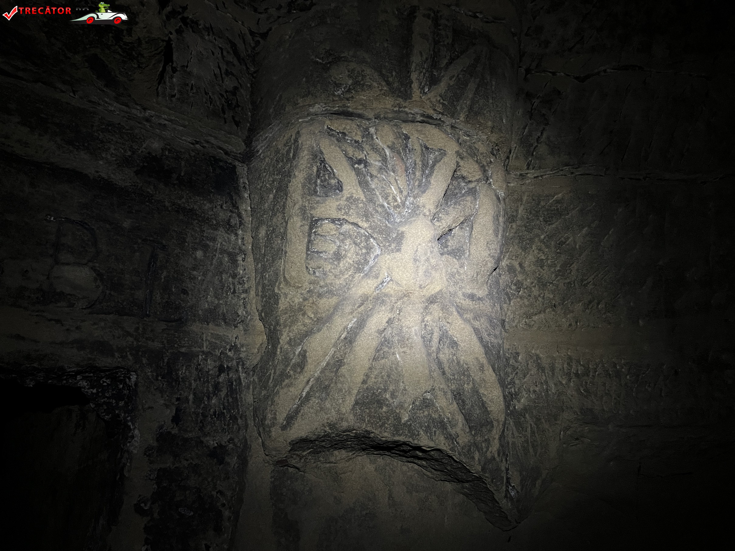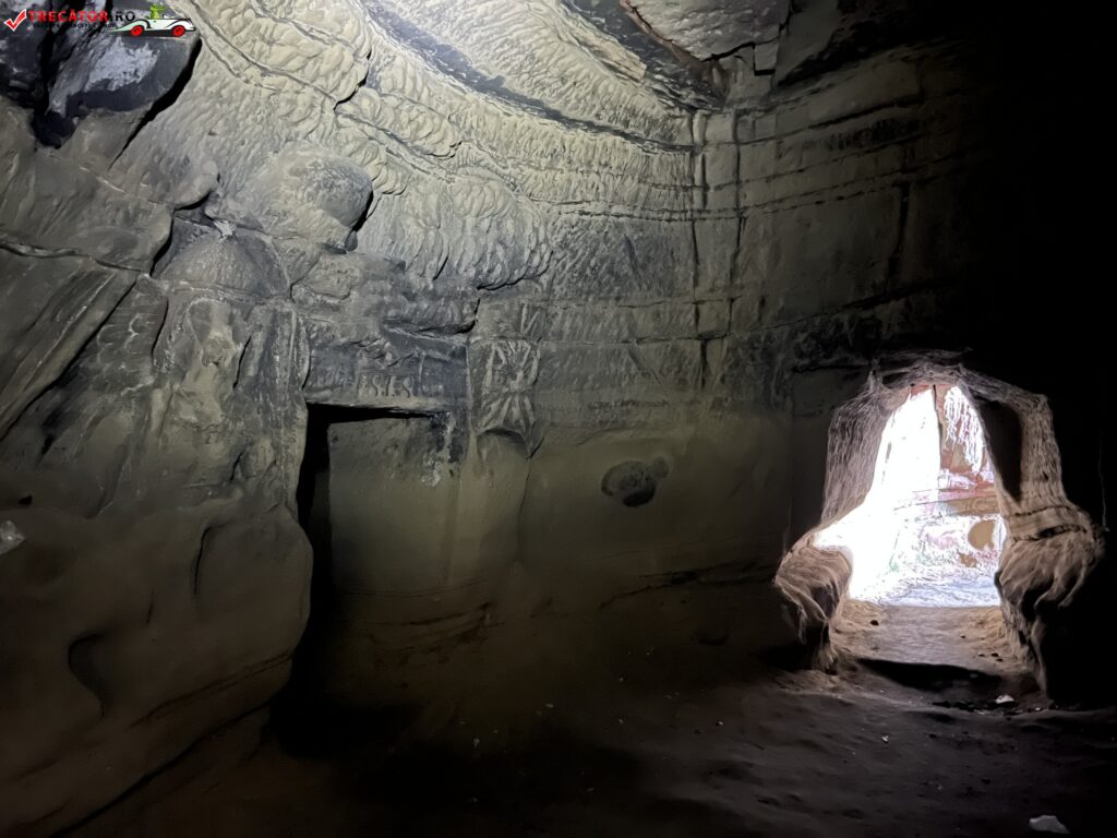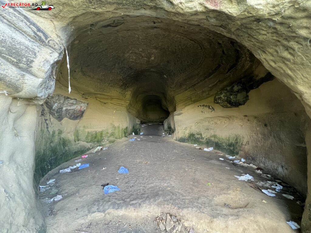 Peştera se află într-o stare deplorabilă, e lăsată pradă intruşilor necivilizaţi. În adâncimea peşterii după o curbură spaţiul se lărgeşte şi aici se află intrarea criptei. Intrarea se face printr-o uşă scundă cu deschidere dreptunghiulară, flancată de reliefuri sculptate în gresie.