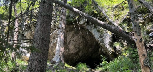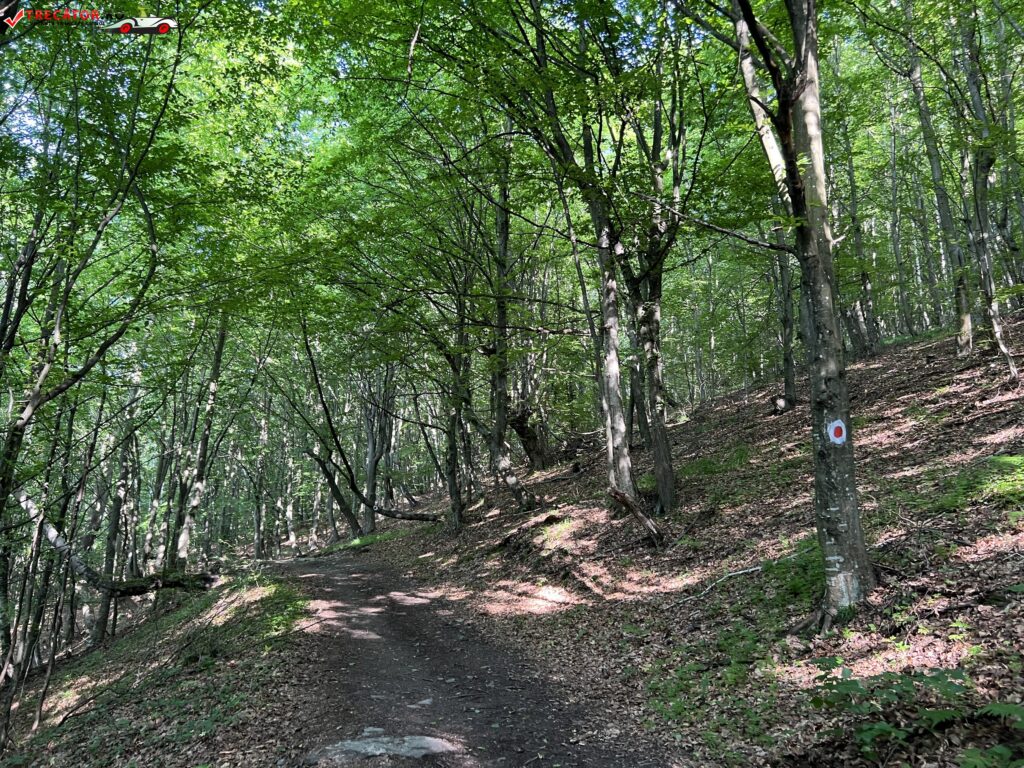 După aproximativ 200 de metri se poate observa și traseul turistic marcat cu cerc roșu cu alb.