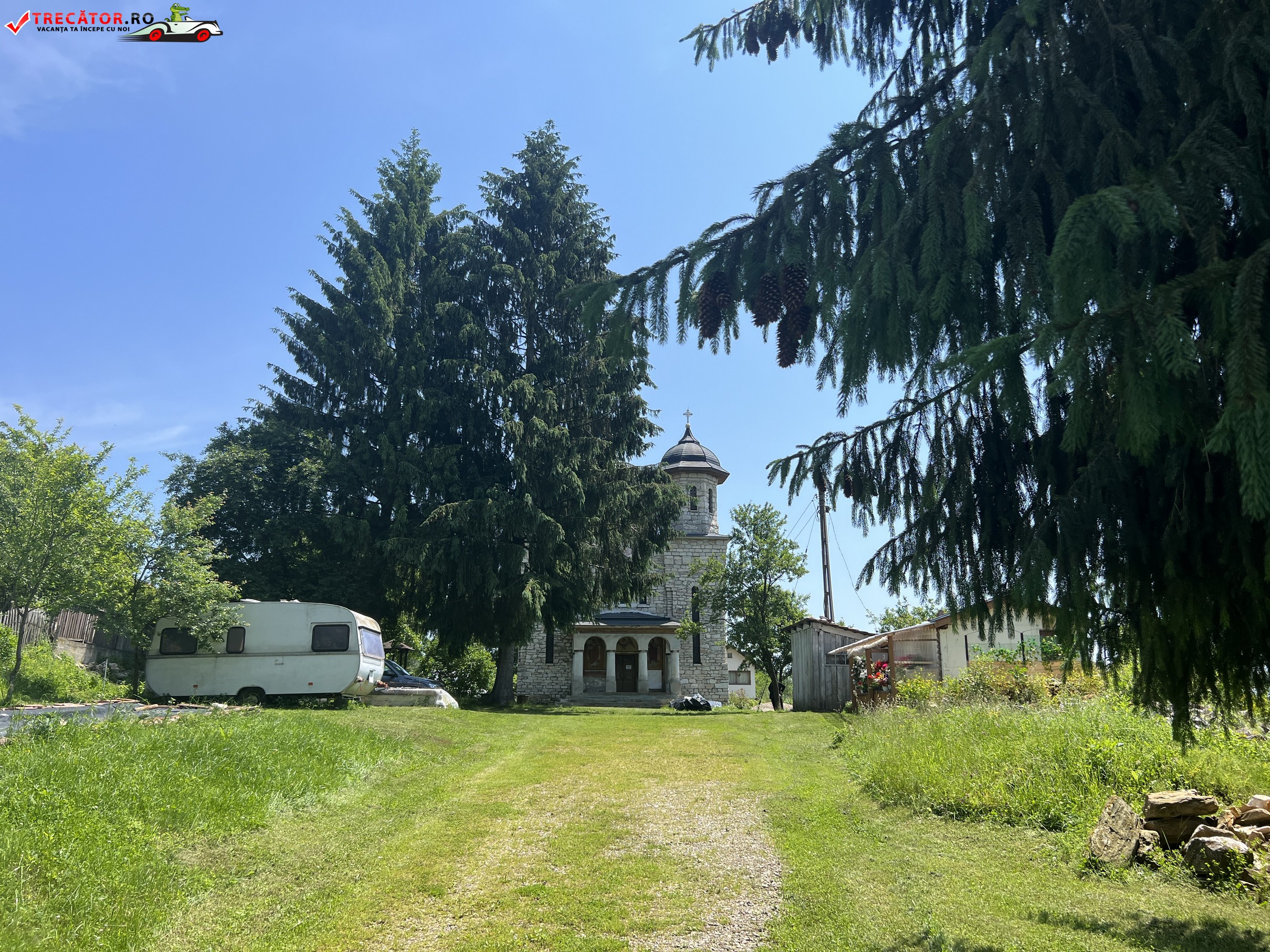 Biserica, unde slujesc cele două călugăriţe, a fost ridicată din blocuri de marmură, în anii 1930, de preotul Petru Roşu.
