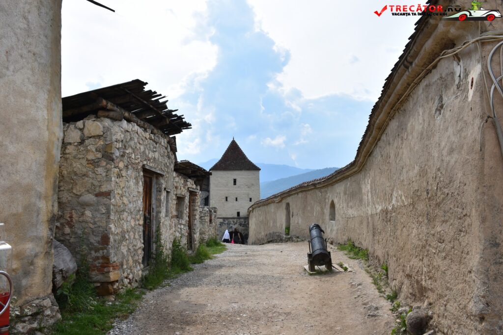 Curtea interioara a cetatii este brazdata de carari înguste, din piatra, ce serpuiesc printre casele acoperite cu tigla. Felinare prinse în zidurile înalte si îngalbenite strajuiesc drumurile. In interiorul incintei se pastreaza ruinele a peste 30 de case menite sa-i adaposteasca pe locuitorii asezarii sau bunurile acestora. Din ele amintim scoala, capela si locuinta preotului.