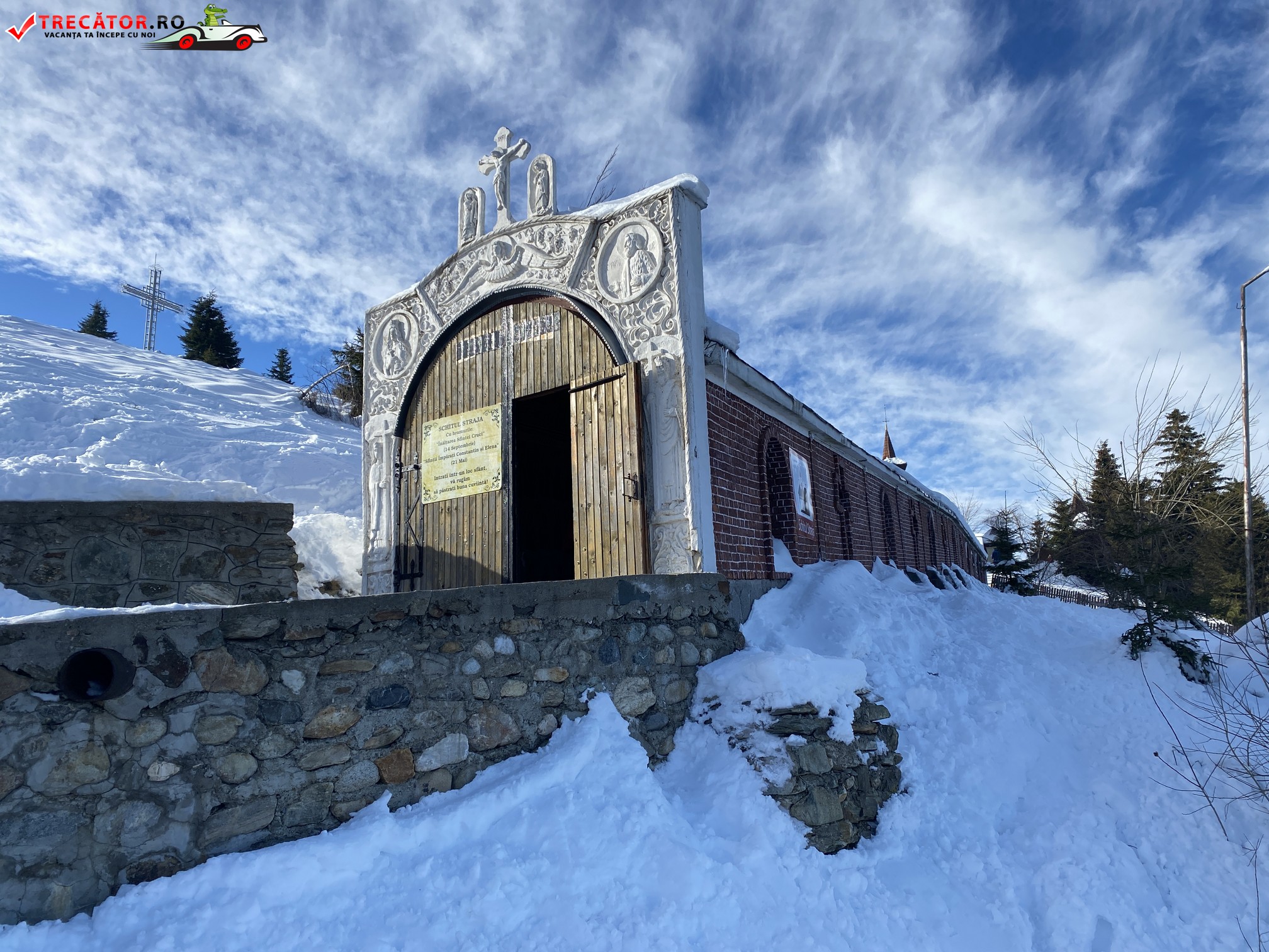 Bisericuța din lemn poartă hramul Sfinților Apostoli Constantin și Elena și a devenit, alături de cruce și un calendar pictat, unul dintre simbolurile stațiunii, mai ales că este foarte frumoasă. Aici este locul unde se organizează slujbe la sărbătorile de peste an, cel mai mare eveniment fiind legat de Vinerea Mare, atunci când este depusă crucea din lemn de paltin ce este purtată pe umeri de credincioși cale de peste 10 kilometri, pe Drumul Crucii, de la Lupeni, la Straja.