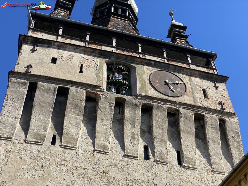 Simbol fascinant al orașului, Turnul cu Ceas din Sighișoara datează din secolul al XIV-lea și are 64 de metri înălțime. Nivelul al cincilea adăpostește încă din sec. XVII celebrul orologiu cu figurine, realizate în stilul barocului rustic. Aici putem privi îndeaproape către semnificațiile pe care ni le conferă întruchipările principalilor zei din mitologia romană și greacă ce fac trimitere către astronomie, astrologie și alchimie.