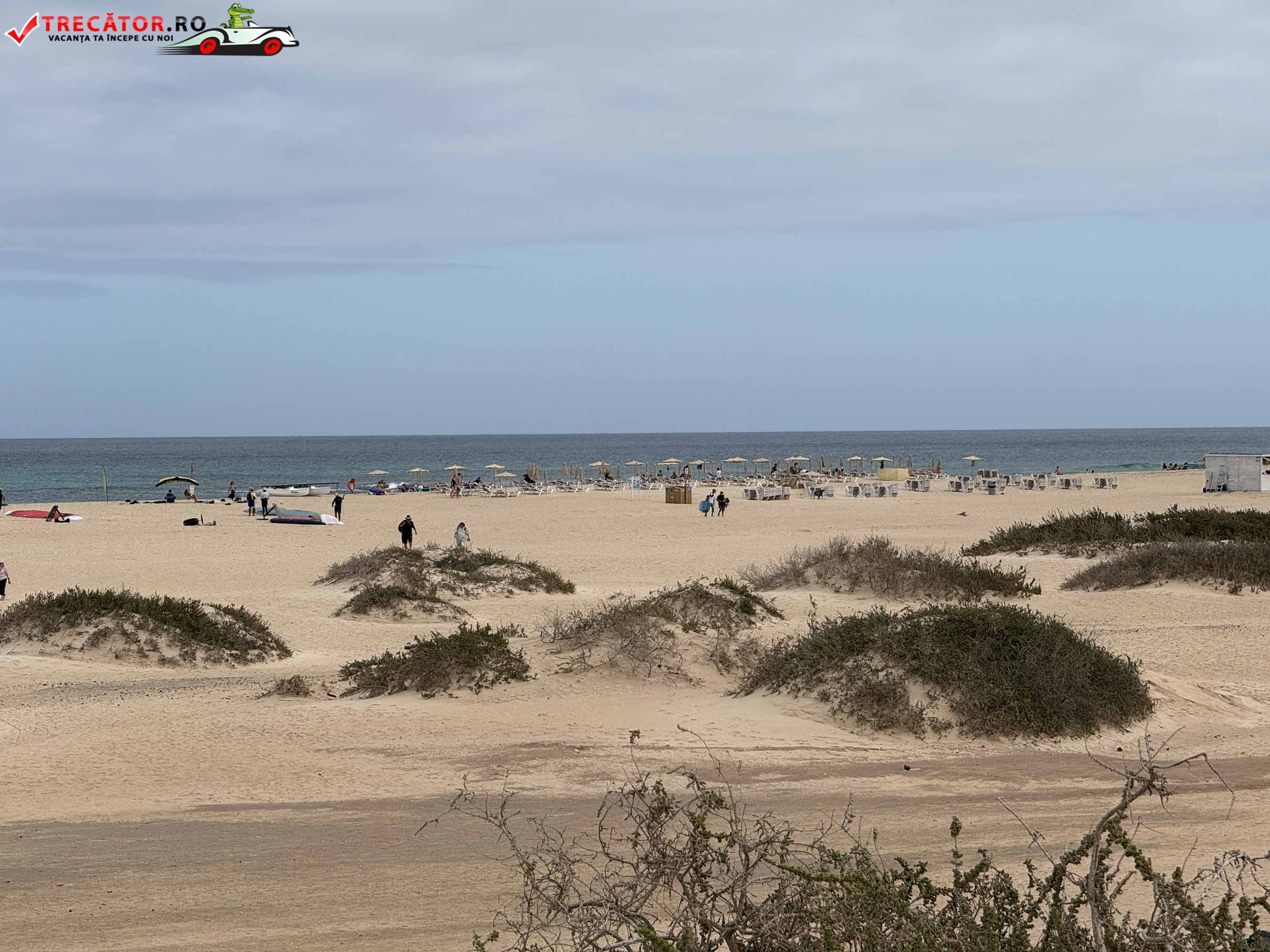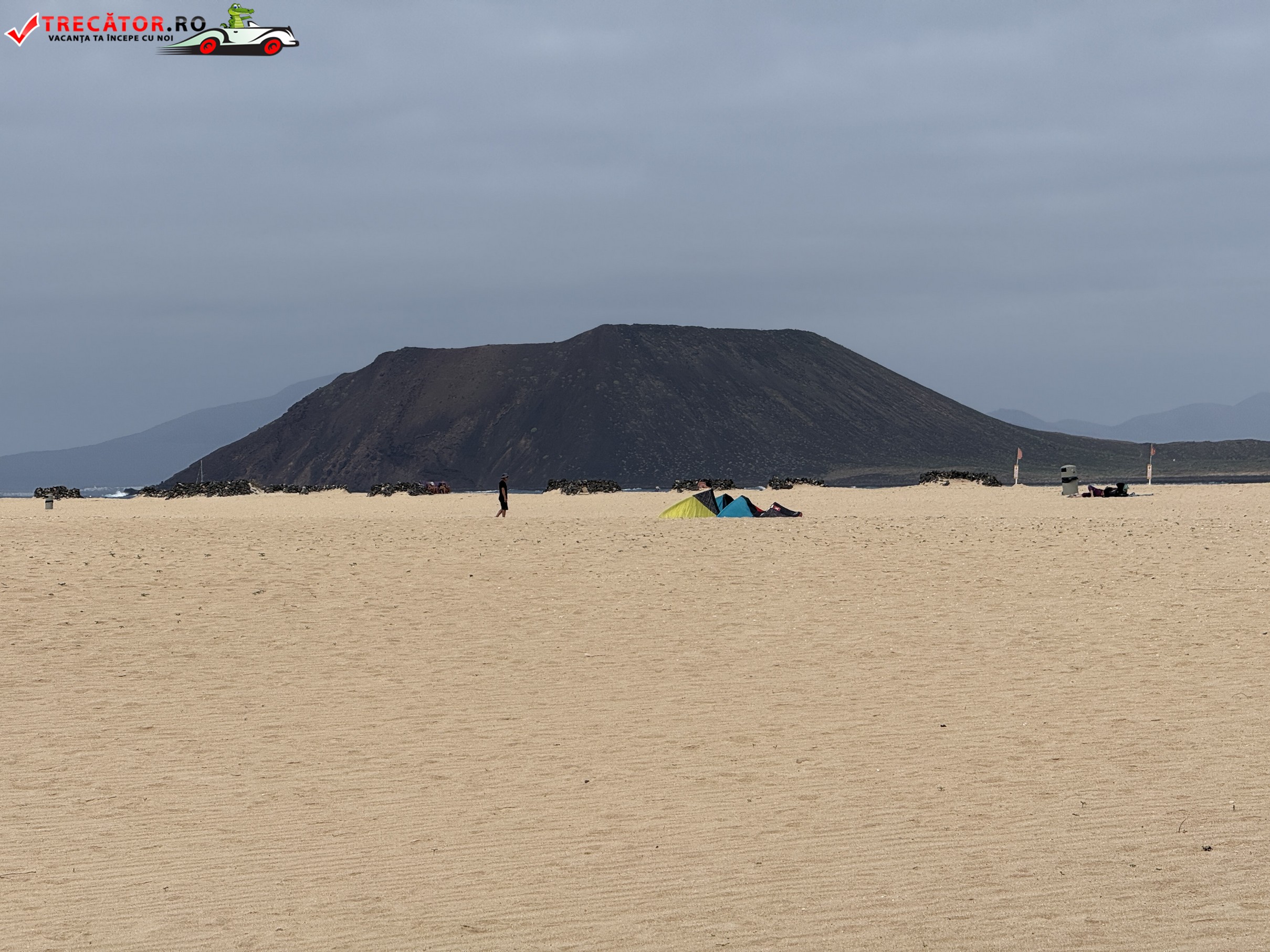 Peisajul este completat, în larg, de silueta insulei Lobos, vizibilă în zilele senine, adăugând profunzime panoramei. La apus, lumina capătă tonuri aurii și rozalii, iar nisipul și dunele par să strălucească. Este un moment preferat de fotografi și de cei care caută liniștea unui final de zi petrecut aproape de natură.