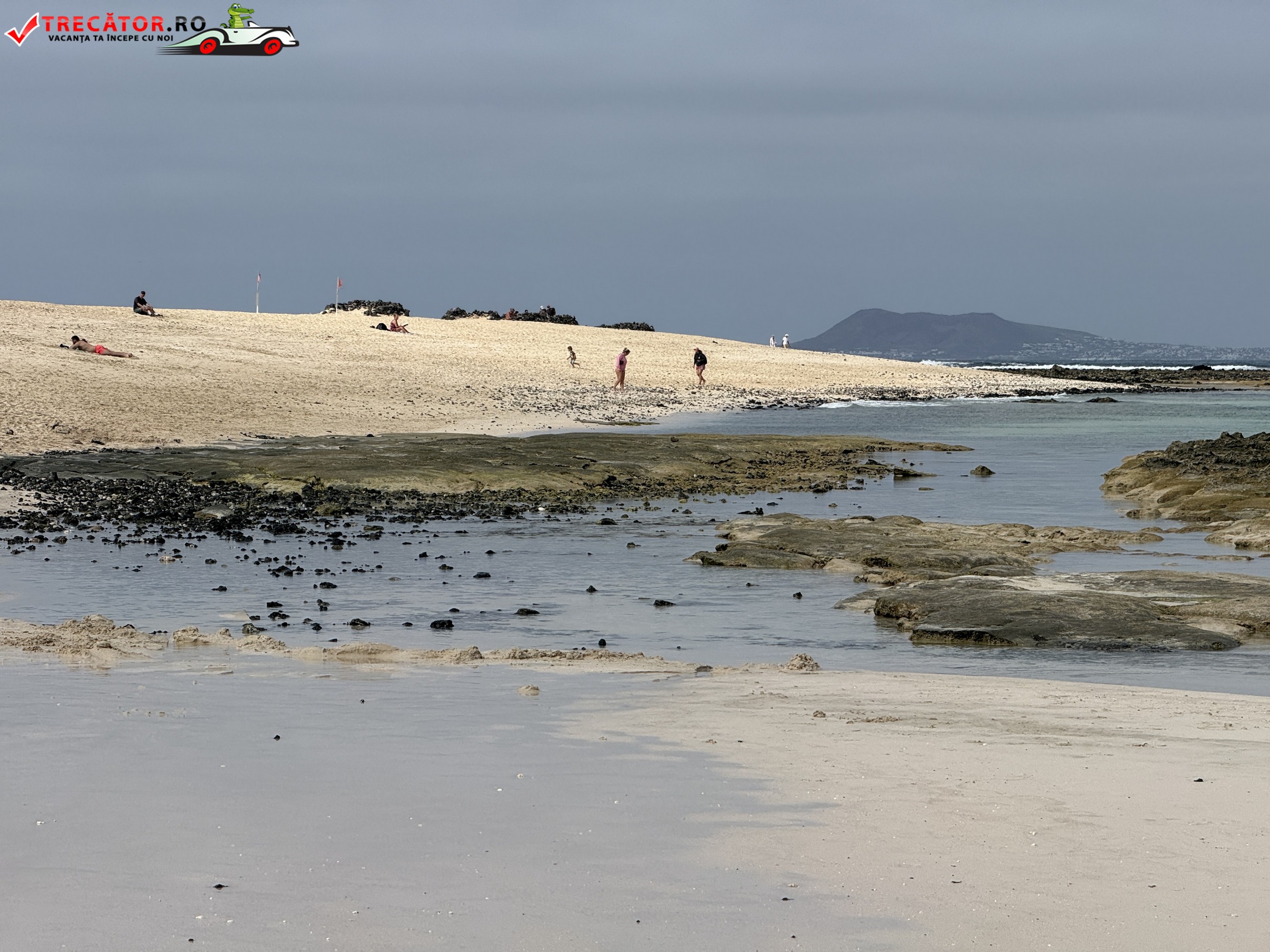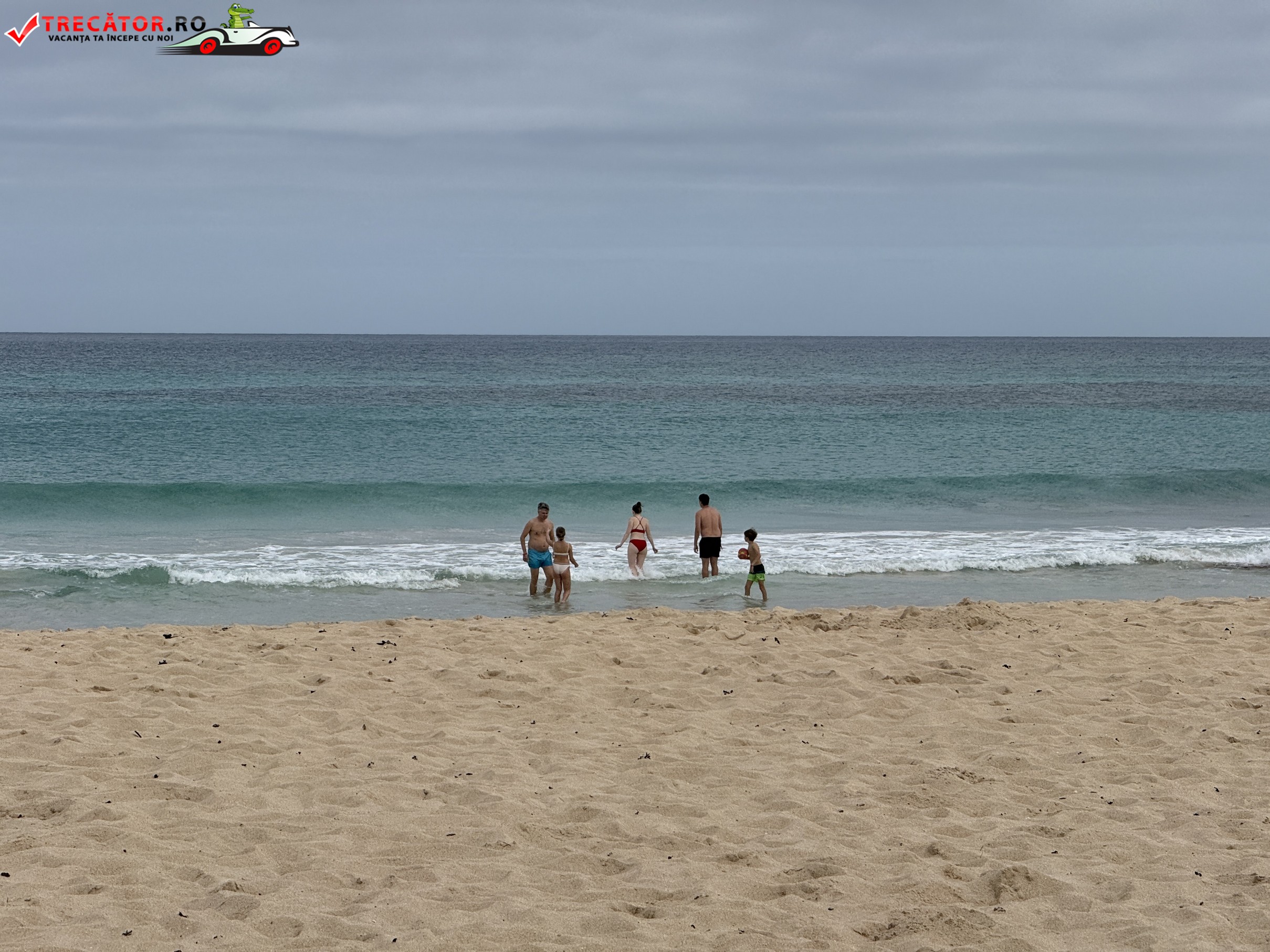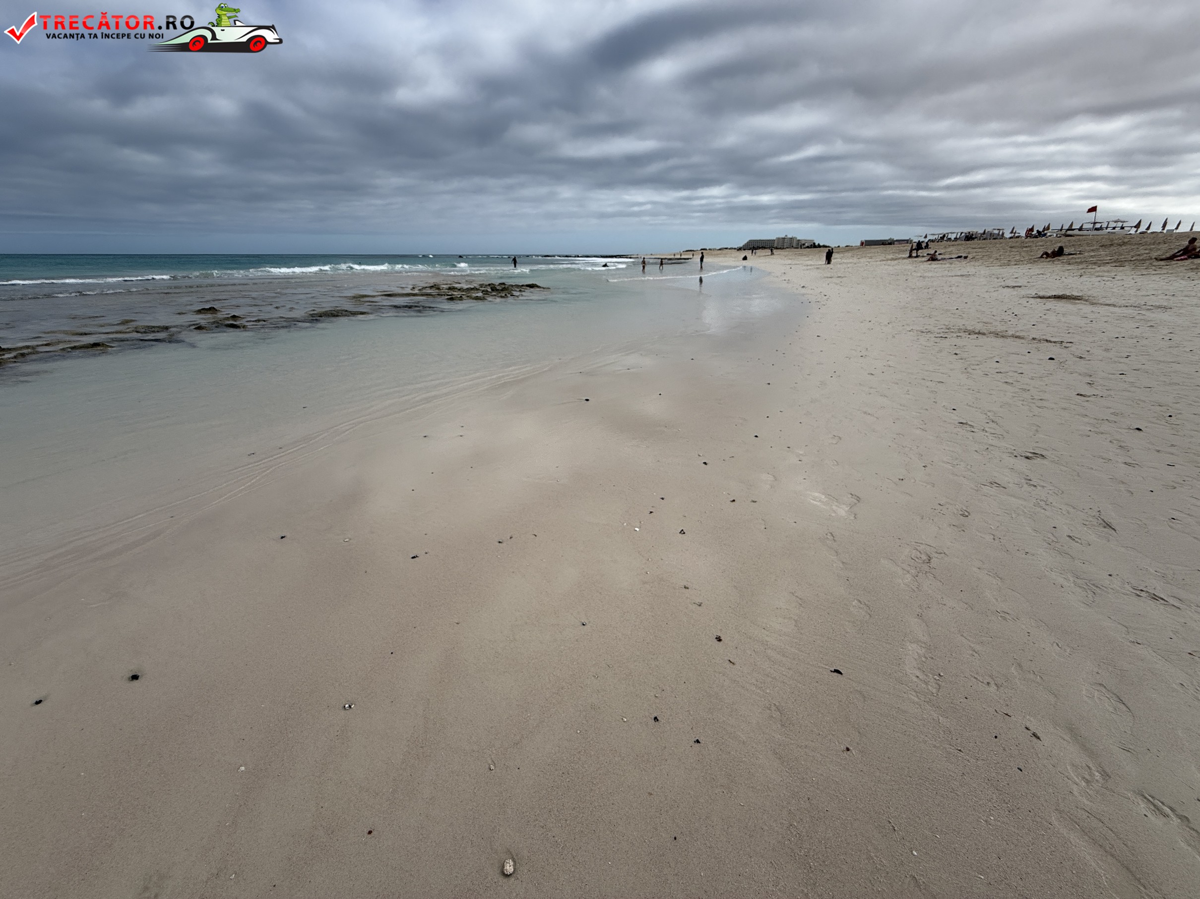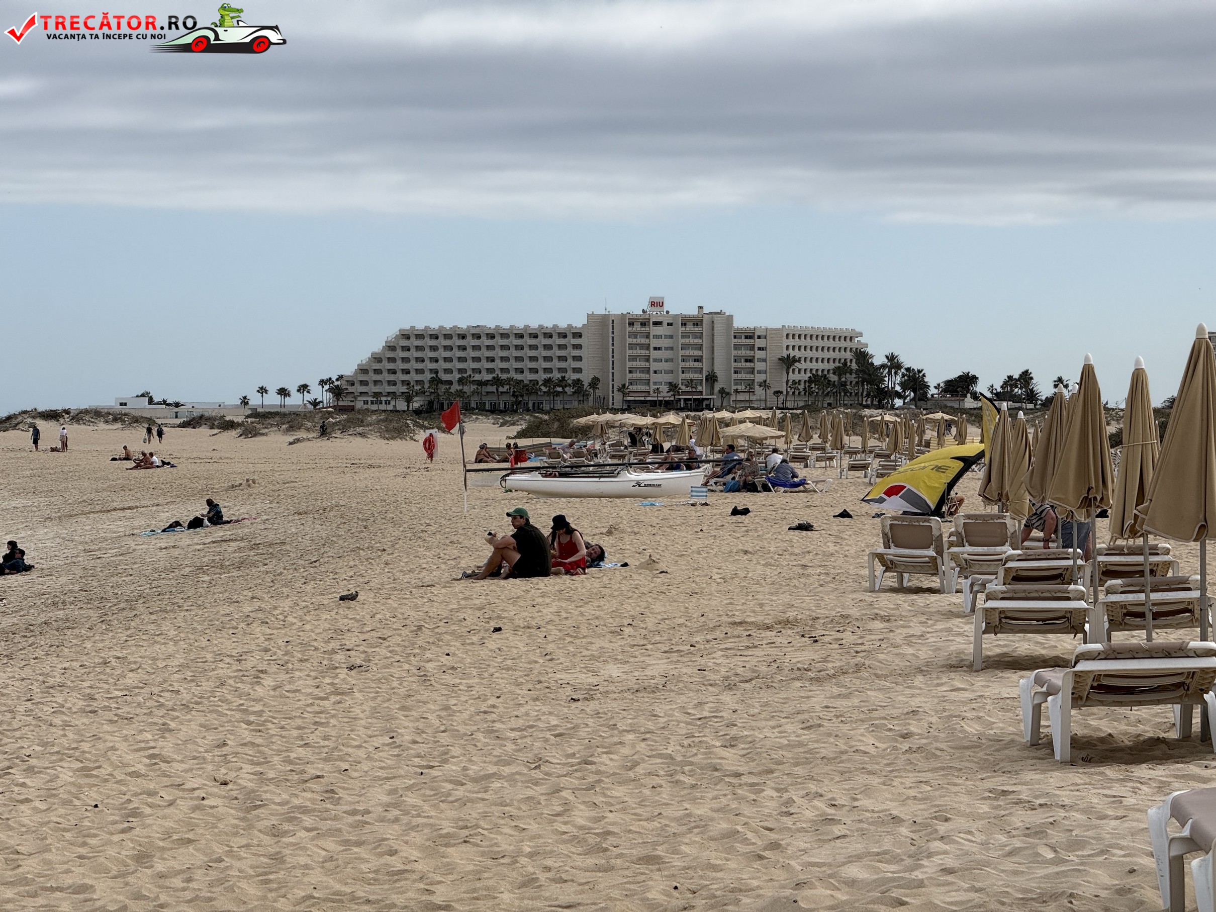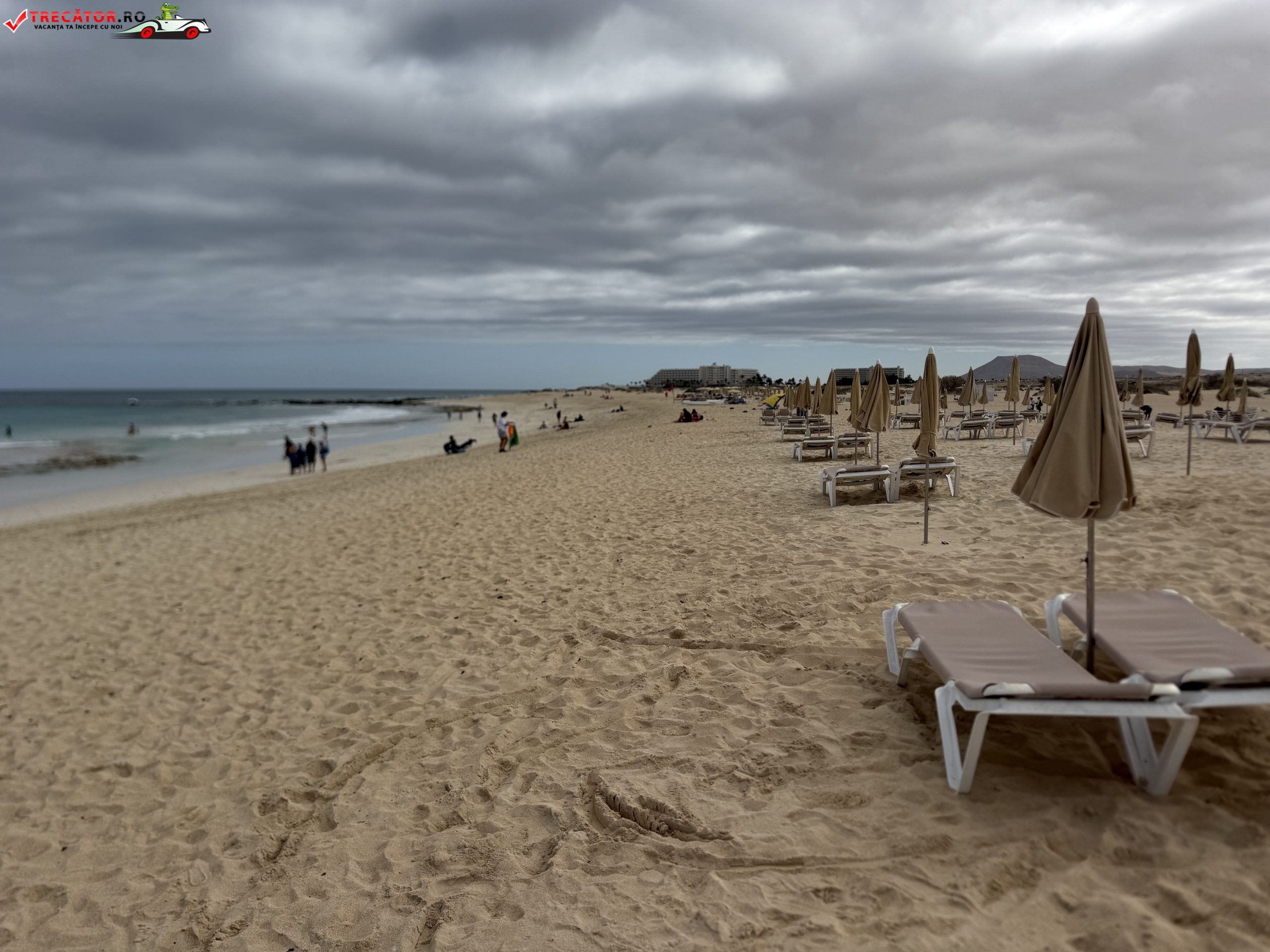 Apele oceanului sunt limpezi, cu nuanțe ce variază de la turcoaz deschis la albastru intens. În zilele calme, marea este potrivită pentru înot și pentru familiile cu copii, mai ales în zonele unde fundul apei coboară lin. În perioadele cu vânt mai puternic, valurile devin mai energice, atrăgând pasionații de sporturi nautice. Plajele sunt renumite pentru condițiile excelente de windsurfing și kitesurfing, Fuerteventura fiind considerată una dintre cele mai bune destinații europene pentru aceste activități. Siluetele colorate ale zmeielor de kitesurf completează peisajul și adaugă un plus de dinamism atmosferei.