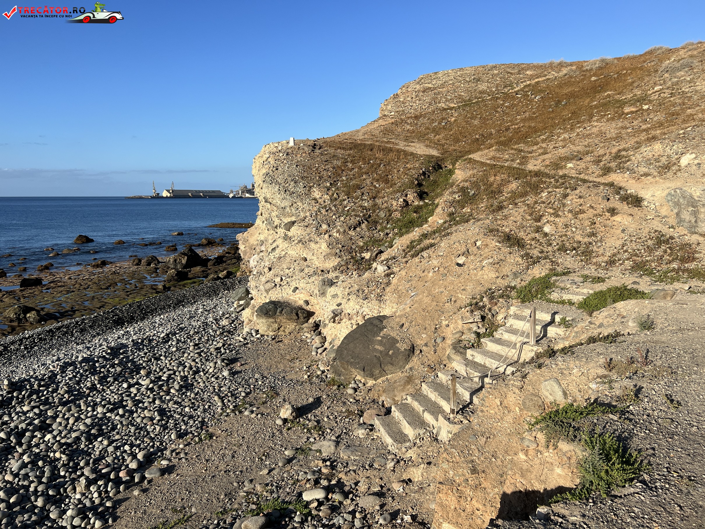 Este o coastă spațioasă cu mai multe golfuri, cu apă albastră cristalină și acoperire cu nisip gri și pietricele, așa că nu aveți nevoie de pantofi speciali.