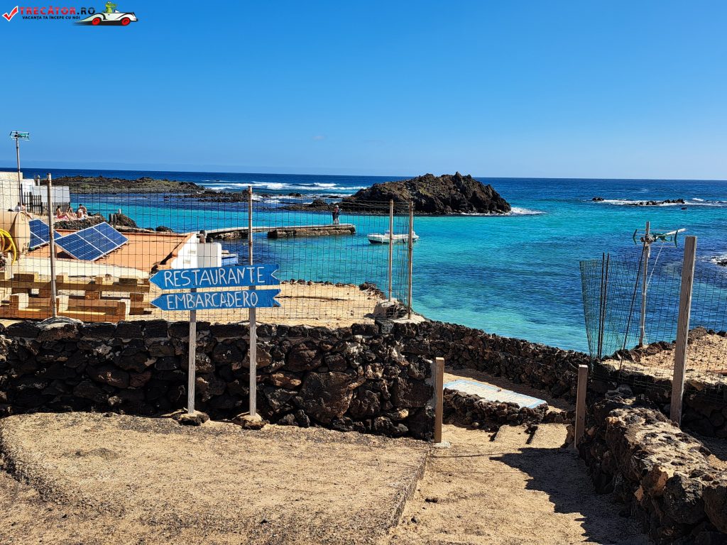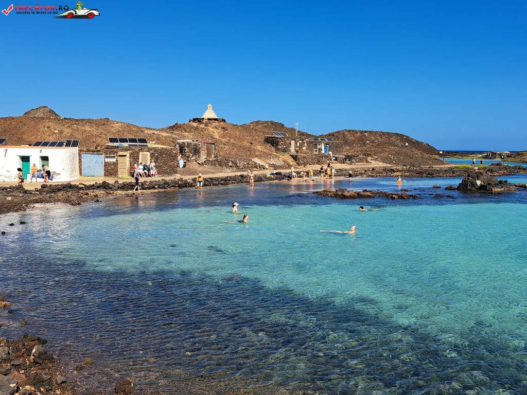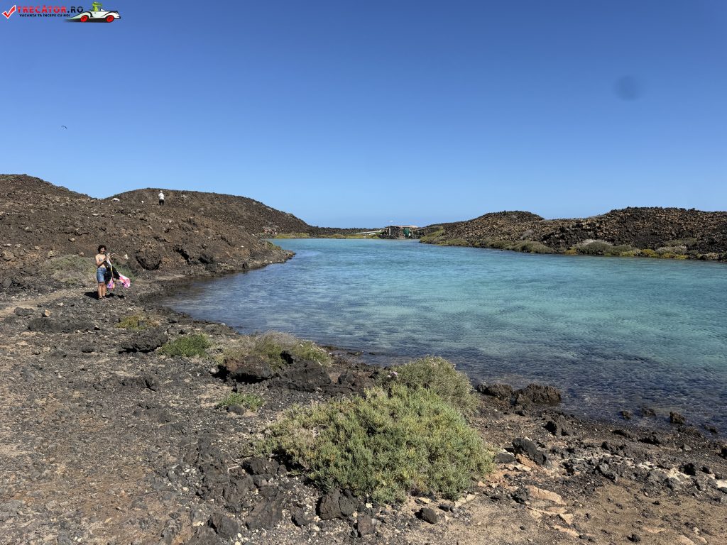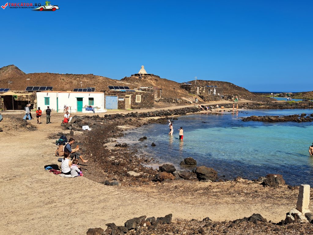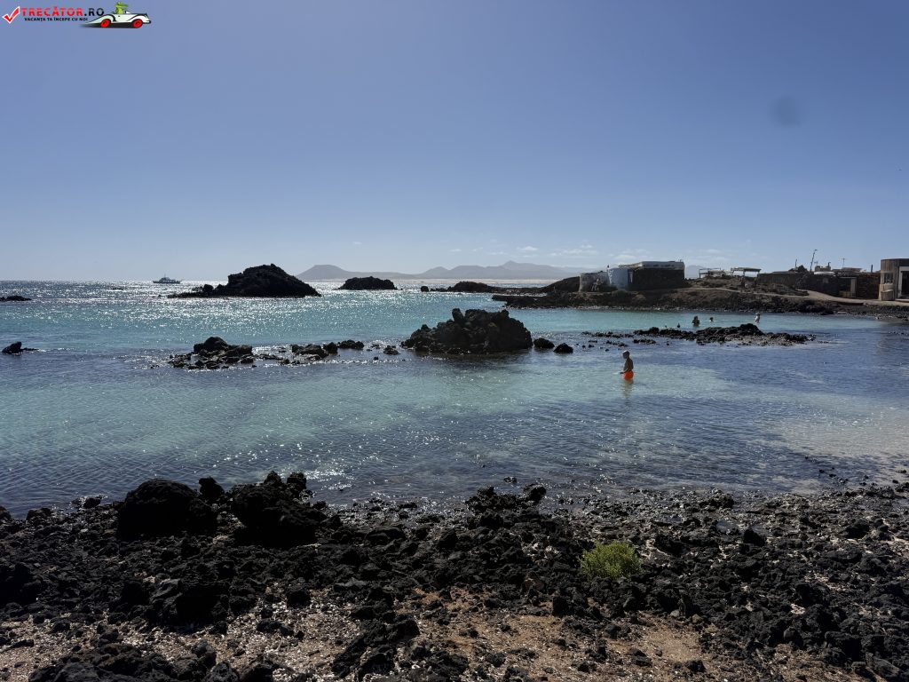 Zona Lagos de Lobos este asociată, în practică, cu Puertito de Lobos – micul cătun pescăresc al insulei, cu câteva construcții joase și un golf adăpostit. Aici se simte cel mai clar contrastul Canarelor: uscatul e arid, pietros, cu relief negru-ruginiu și vegetație rară, iar la câțiva pași apa e limpede, calmă și incredibil de fotogenică. Când marea este liniștită, bazinele naturale devin un loc excelent pentru baie și plutit în voie, iar pentru snorkeling sunt ideale: adâncimea mică îți dă curaj, iar stâncile țin peștii aproape de țărm.
