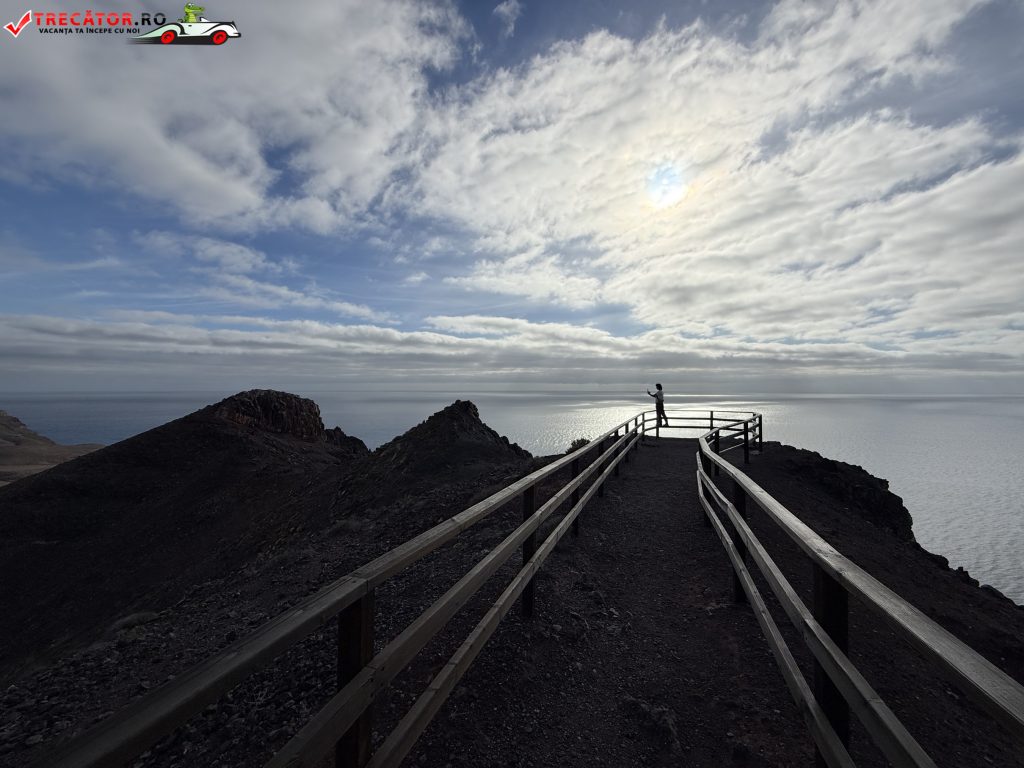 Accesul final către mirador este spectaculos tocmai pentru că nu e „doar un parapet”. O pasarelă și un traseu din lemn, montate pe muchia falezei, duc spre o platformă mică de observare. Această porțiune îți încetinește ritmul: te obligă să mergi atent, să simți rafalele și să te oprești des pentru cadre foto. Dacă ai rău de înălțime, nu e un loc periculos în sine, dar expunerea vizuală poate fi intensă.
