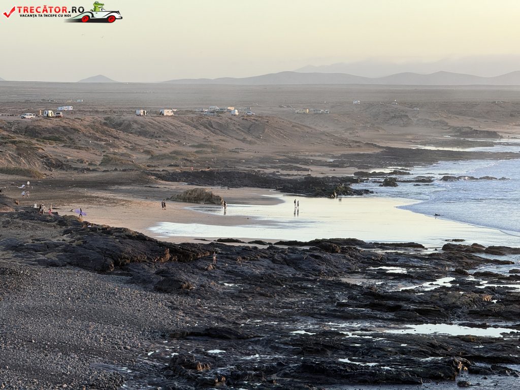 Deși apa arată irezistibil, trebuie spus clar: coasta vestică a Fuerteventurii poate avea curenți puternici și valuri mari, iar înotul devine riscant când marea e agitată. Recomandarea practică este să intri doar când condițiile sunt calme și să respecți semnalizarea de pe plajă (steagurile) sau indicațiile salvamarilor atunci când există. În unele perioade, în funcție de maree, se pot forma mici lagune pe nisip, cu apă mai caldă și mai puțină agitație, dar acestea se schimbă repede și nu înlocuiesc prudența față de oceanul deschis. Dacă vrei o baie sigură „garantată”, El Cotillo are lagune protejate de recife mai la nord, special apreciate de familii.