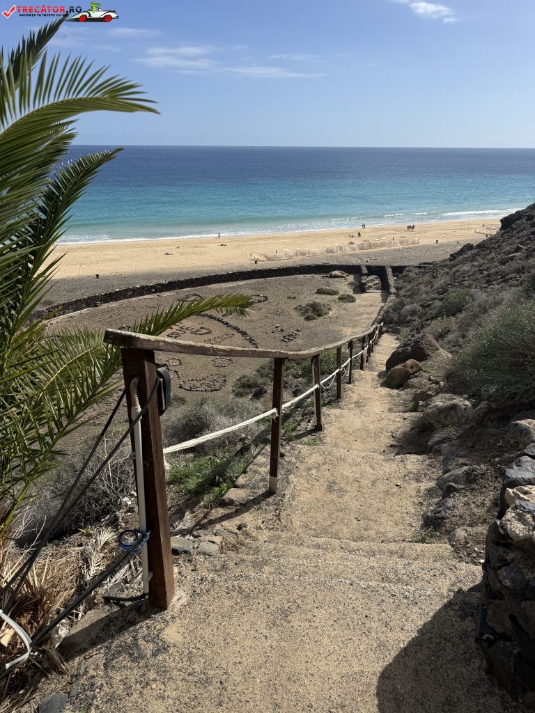 Peisajul din jur este tipic pentru sudul insulei Fuerteventura: dealuri aride, vegetație redusă și un relief modelat de vânt. Această combinație între nisipul auriu, oceanul vast și fundalul semi-deșertic creează un cadru spectaculos pentru fotografii și plimbări la apus. Lumina soarelui, puternică și clară, pune în valoare culorile naturale și transformă fiecare seară într-un spectacol vizual.