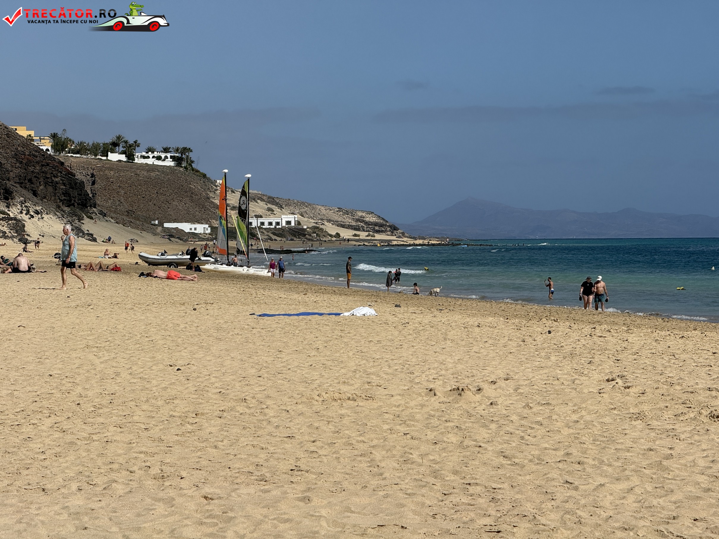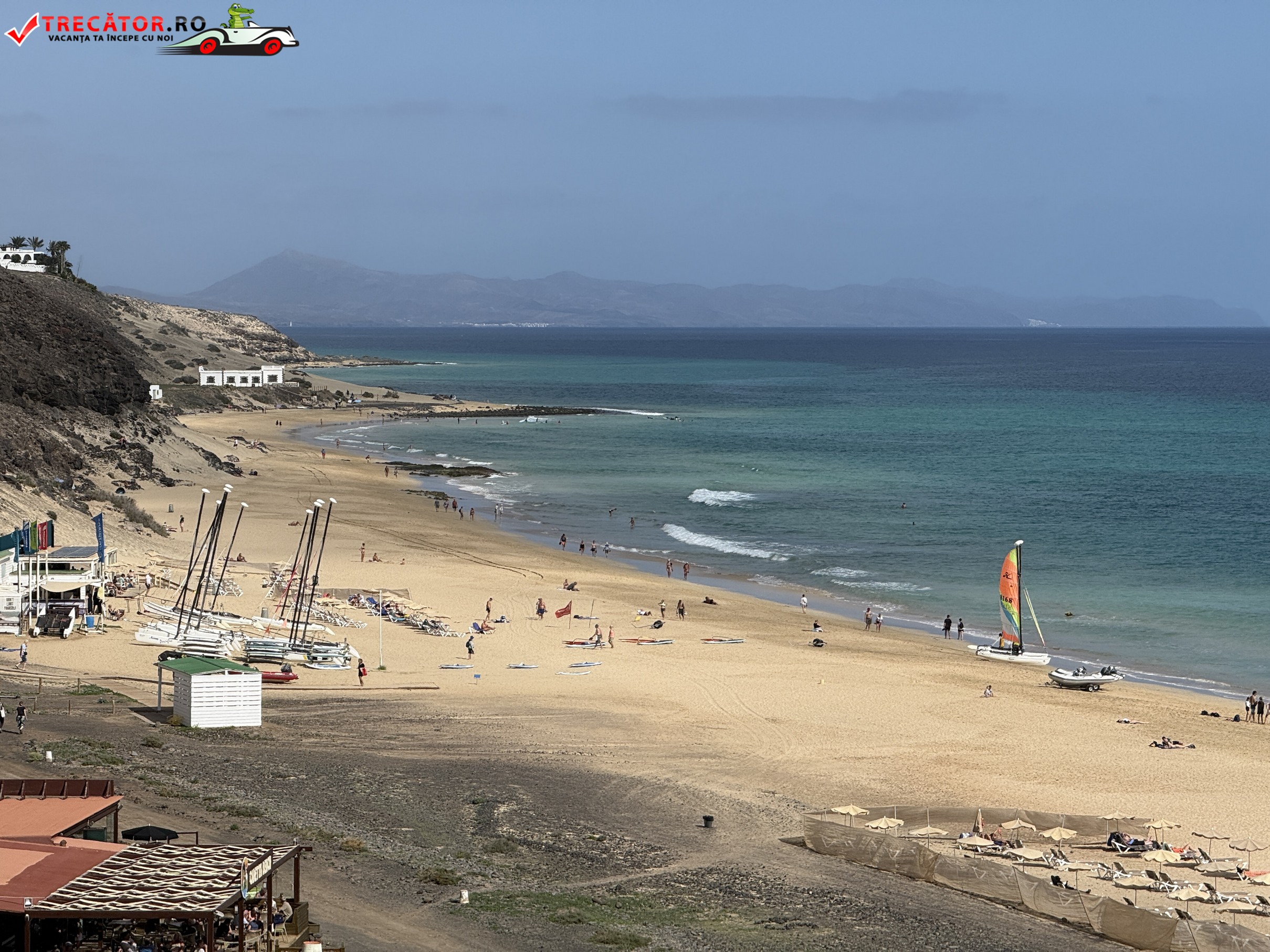 Peisajul din jur este tipic pentru sudul insulei Fuerteventura: dealuri aride, vegetație redusă și un relief modelat de vânt. Această combinație între nisipul auriu, oceanul vast și fundalul semi-deșertic creează un cadru spectaculos pentru fotografii și plimbări la apus. Lumina soarelui, puternică și clară, pune în valoare culorile naturale și transformă fiecare seară într-un spectacol vizual.