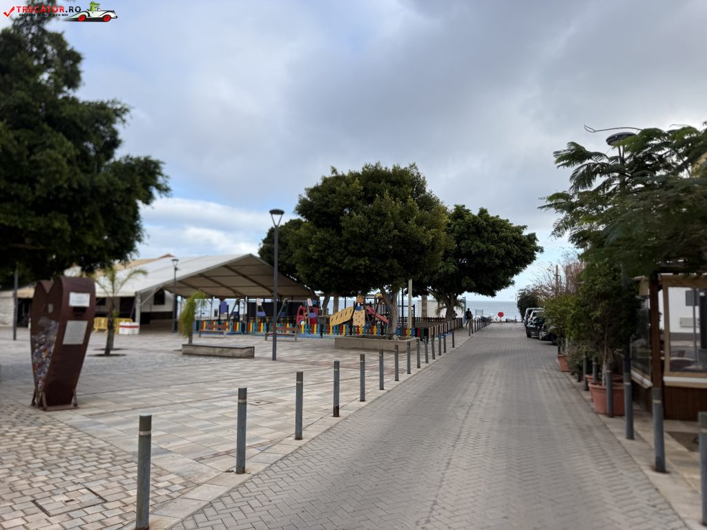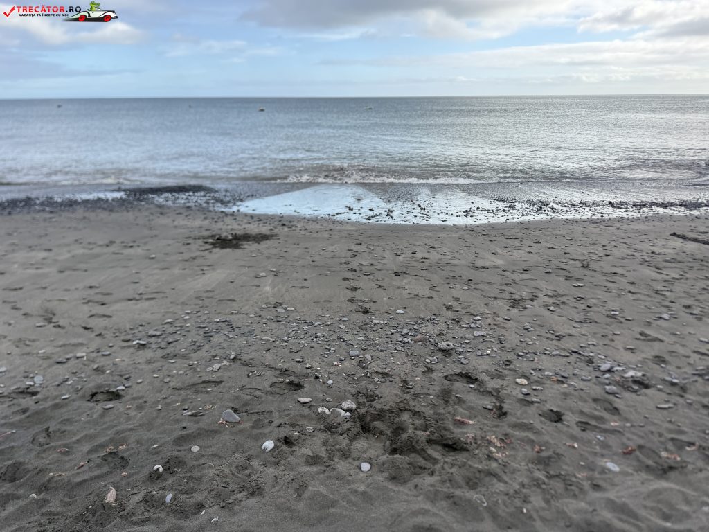 Plaja se întinde pe aproximativ 900–915 metri lungime și are o lățime medie de aproximativ 20 de metri. Suprafața ei este formată în principal din nisip vulcanic închis la culoare, amestecat cu pietricele și roci rotunjite de mare. Aceste elemente naturale oferă un aspect distinct față de plajele cu nisip auriu întâlnite în alte regiuni ale insulei. În anumite zone, mici faleze și formațiuni stâncoase delimitează golfulețe unde apa este de obicei calmă și limpede.