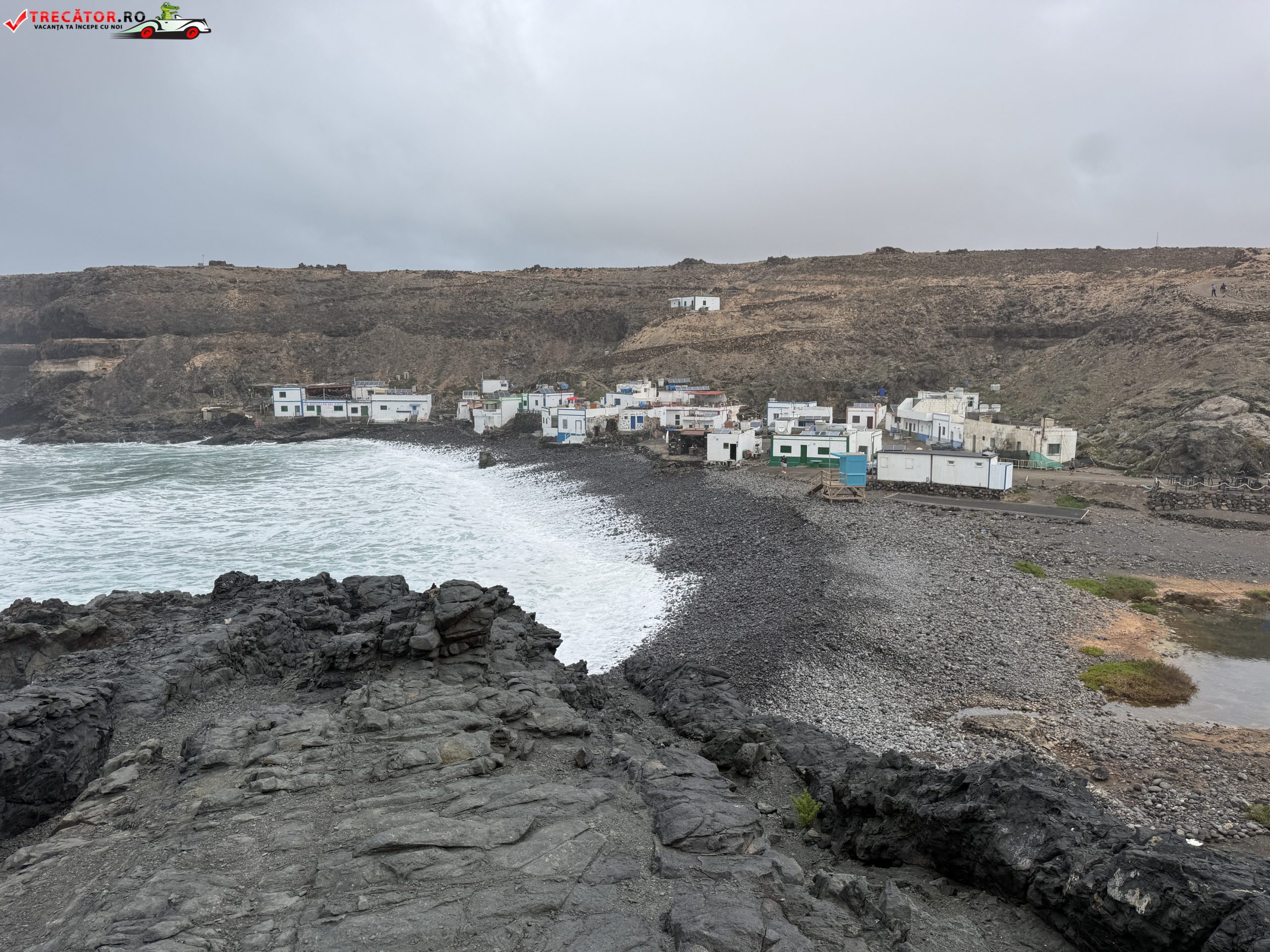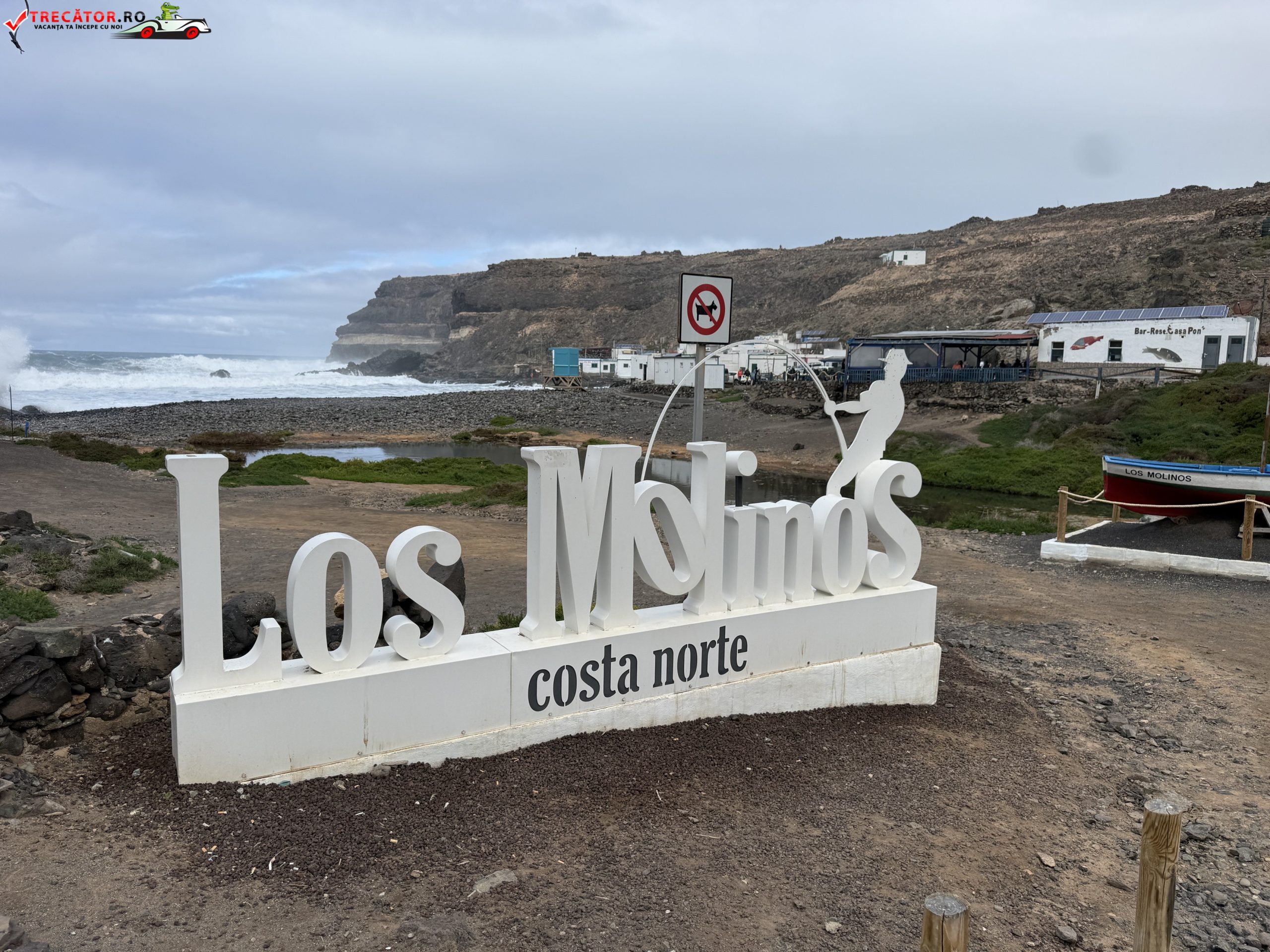 Pe coasta vestică a insulei Fuerteventura, departe de stațiunile cu hoteluri înșirate pe promenadă, Puertito de Los Molinos rămâne un loc cu aer de “insulă veche”: un cătun pescăresc mic, cu câteva case, o mini-zonă de port și o plajă care arată diferit de la o lună la alta. Playa Puertito de Los Molinos (numită adesea și Playa de Los Molinos) e genul de colț pe care îl apreciezi tocmai fiindcă nu încearcă să fie “perfect” în sens turistic. E dramatică, schimbătoare și, în zilele potrivite, spectaculoasă.
