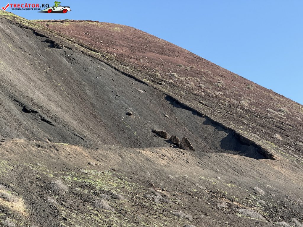 Interiorul craterei dezvăluie detalii fascinante ale activității vulcanice, cu straturi și culori variate de rocă, inclusiv urme vizibile de sulf și materiale cindrice rezultate din erupțiile de odinioară. Traseul oferă oportunități excelente de fotografie, explorare și observare a vieții sălbatice locale — de la capre și mici rozătoare până la păsări ce survolează zona.