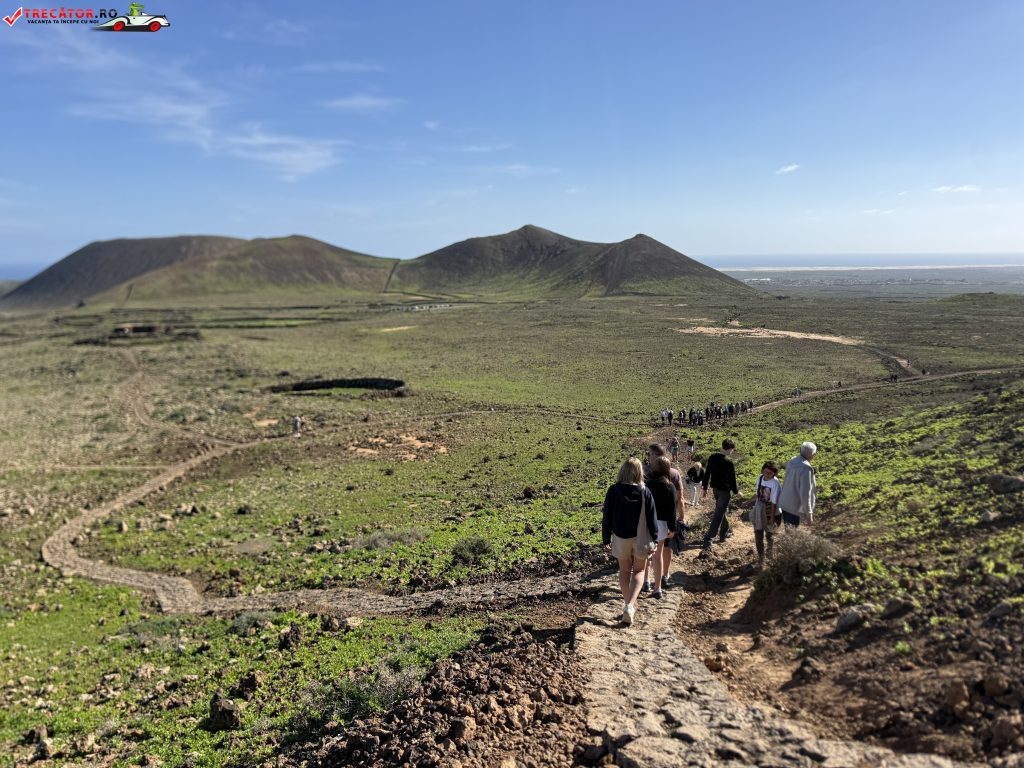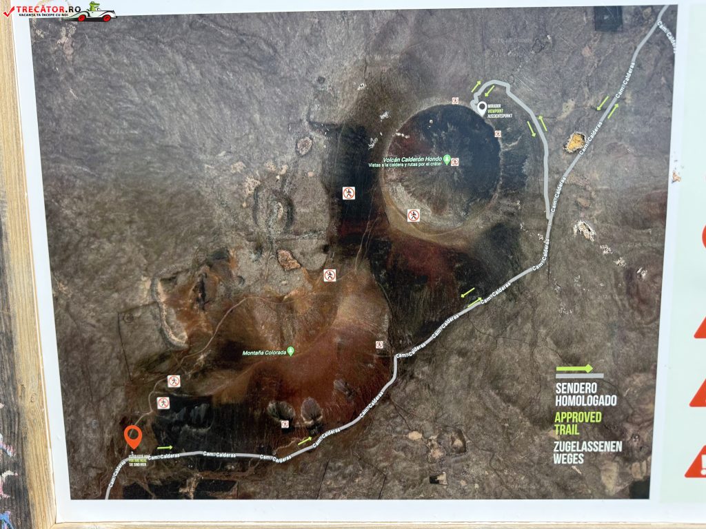 Traseul circular are aproximativ 5 km și poate fi parcurs în 1,5–2 ore, cu un nivel de dificultate ușor spre moderat, potrivit pentru majoritatea vizitatorilor. Poteca bine marcată pornește din apropierea Lajares și urcă treptat pe versantul vulcanului. La o altitudine de aproximativ 278 m, drumeții ajung la marginea craterei, unde se deschide un punct de belvedere spectaculos.