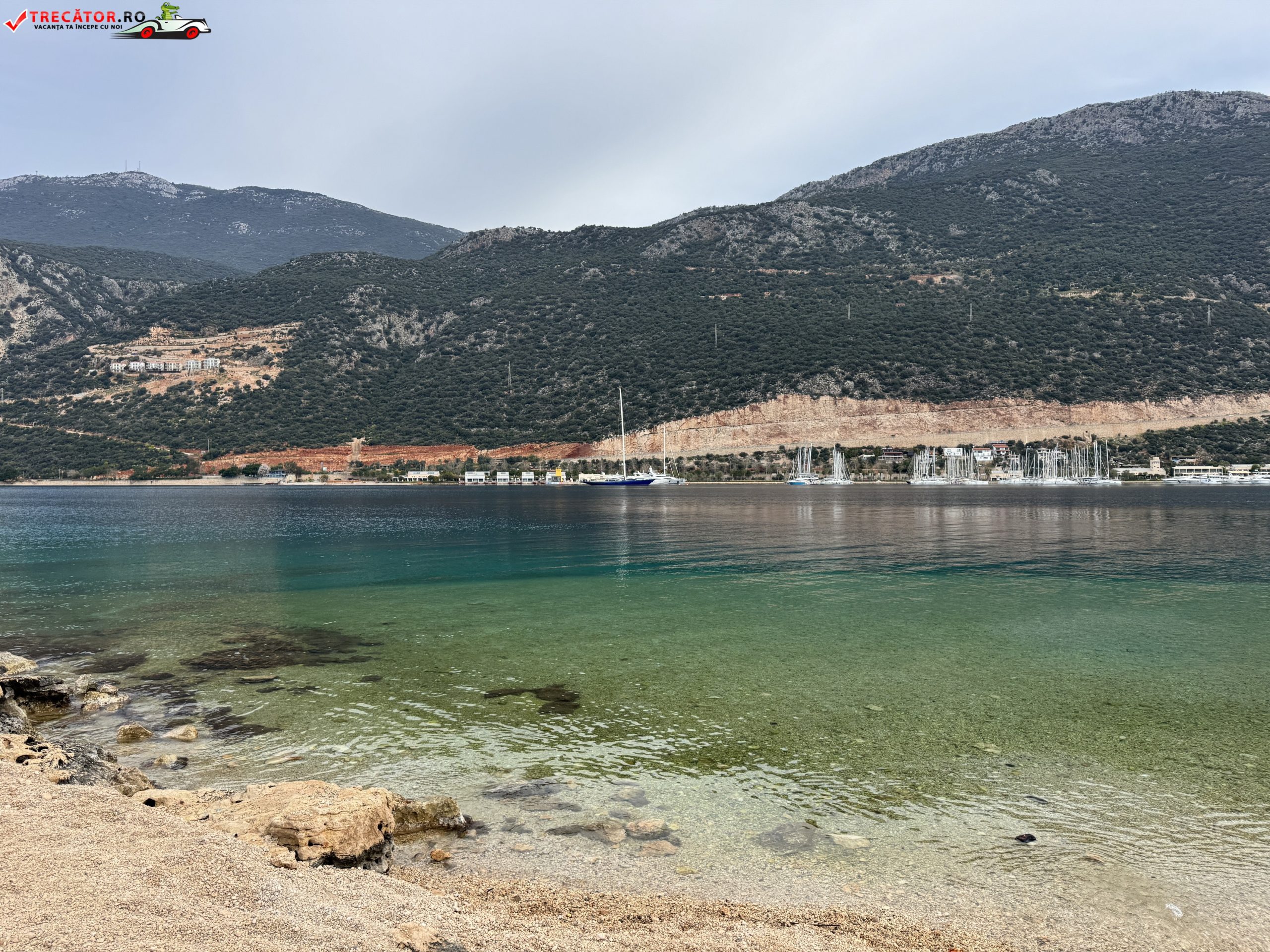 Peisajul completează foarte bine experiența. Nuanțele de albastru specifice coastei din Antalya, lumina puternică a Mediteranei și relieful stâncos al peninsulei conturează un decor tipic pentru sud-vestul Turciei. În zilele senine, priveliștea are claritate remarcabilă, iar atmosfera generală păstrează acel amestec plăcut dintre vacanță mediteraneană și oraș-port cu identitate proprie, atât de caracteristic pentru Kaș.