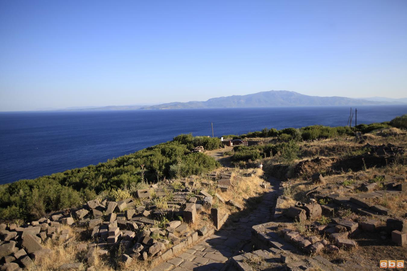 Se poate vedea o mare parte din zona înconjurătoare de la vechiul Templu al Atenei, construit pe partea de sus a unui colț de stâncă trachyte. Din acest templu, pe o zi senina se poate vedea insula Lesbos din apropiere, în partea de sud, Pergam, în sud-est, și Muntele Ida din Frigia în est. La nord, curge râul Tuzla. Spre nord-vest, este poarta spre oraș cu două coloane masive elene care există și astăzi.