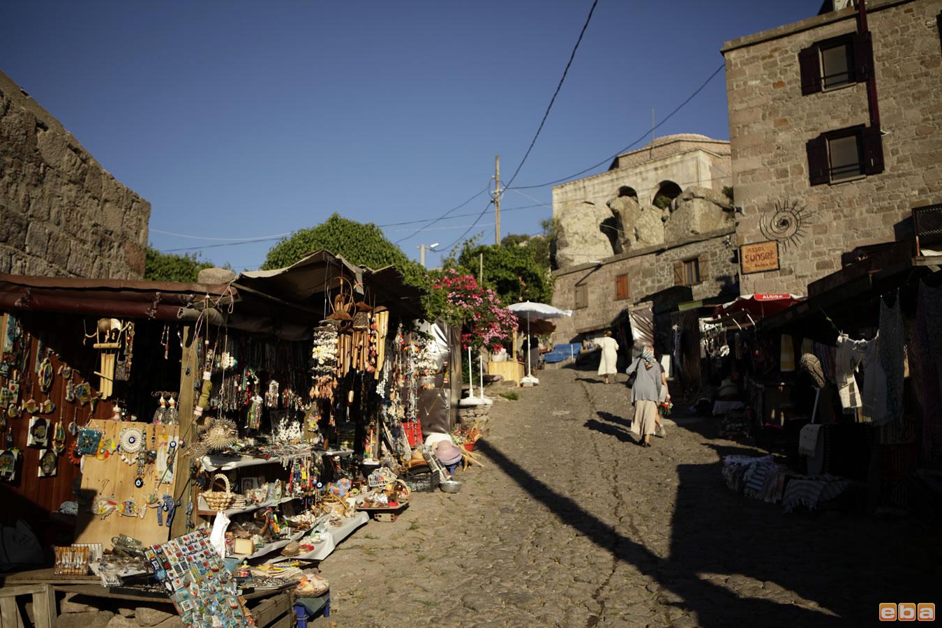Pe partea dinspre mare a unui abrupt de deal, la marginea apei este cătunul numit Iskele (adică Dock sau Wharf), cu case vechi de piatră care servește acum ca hanuri, pensiuni și restaurante.